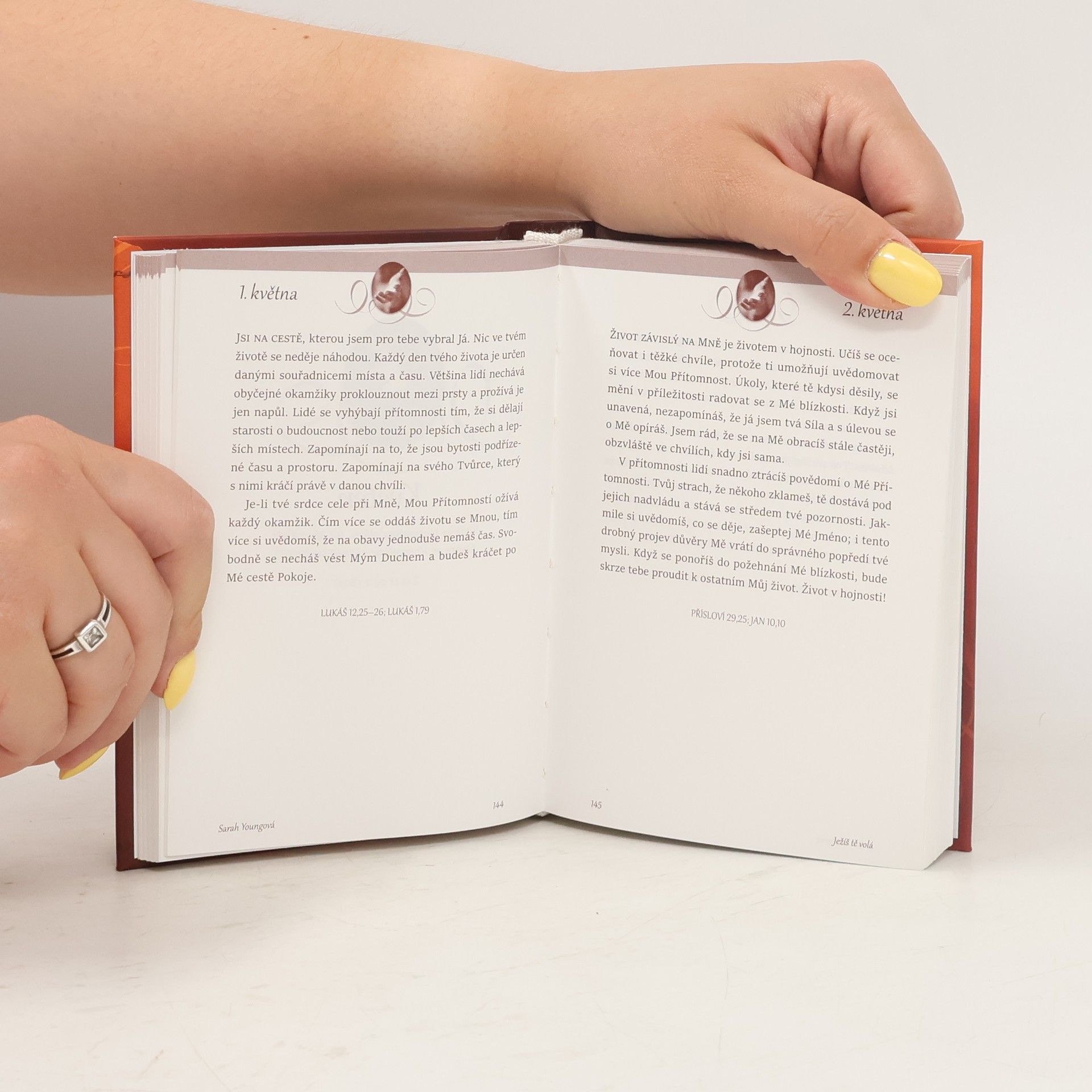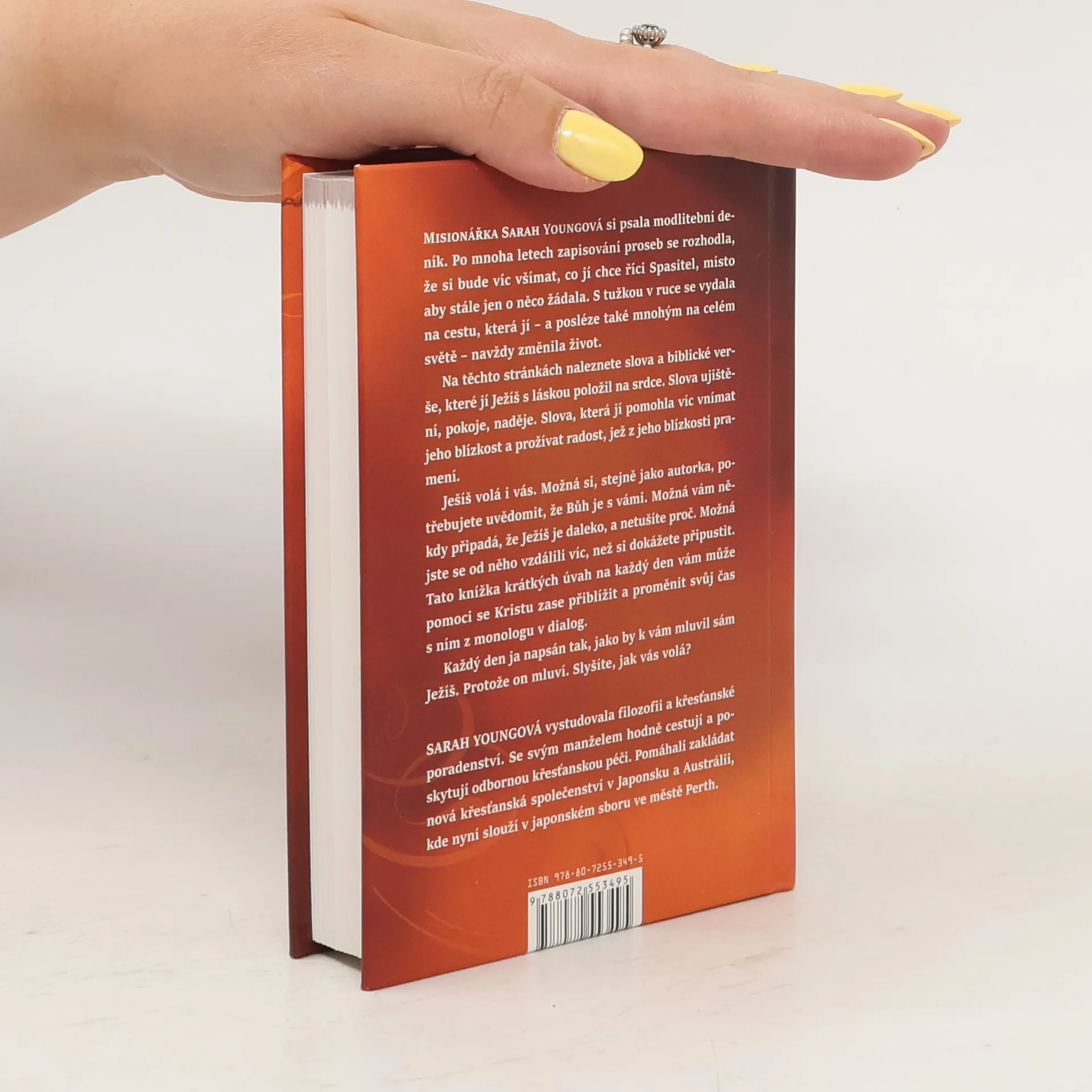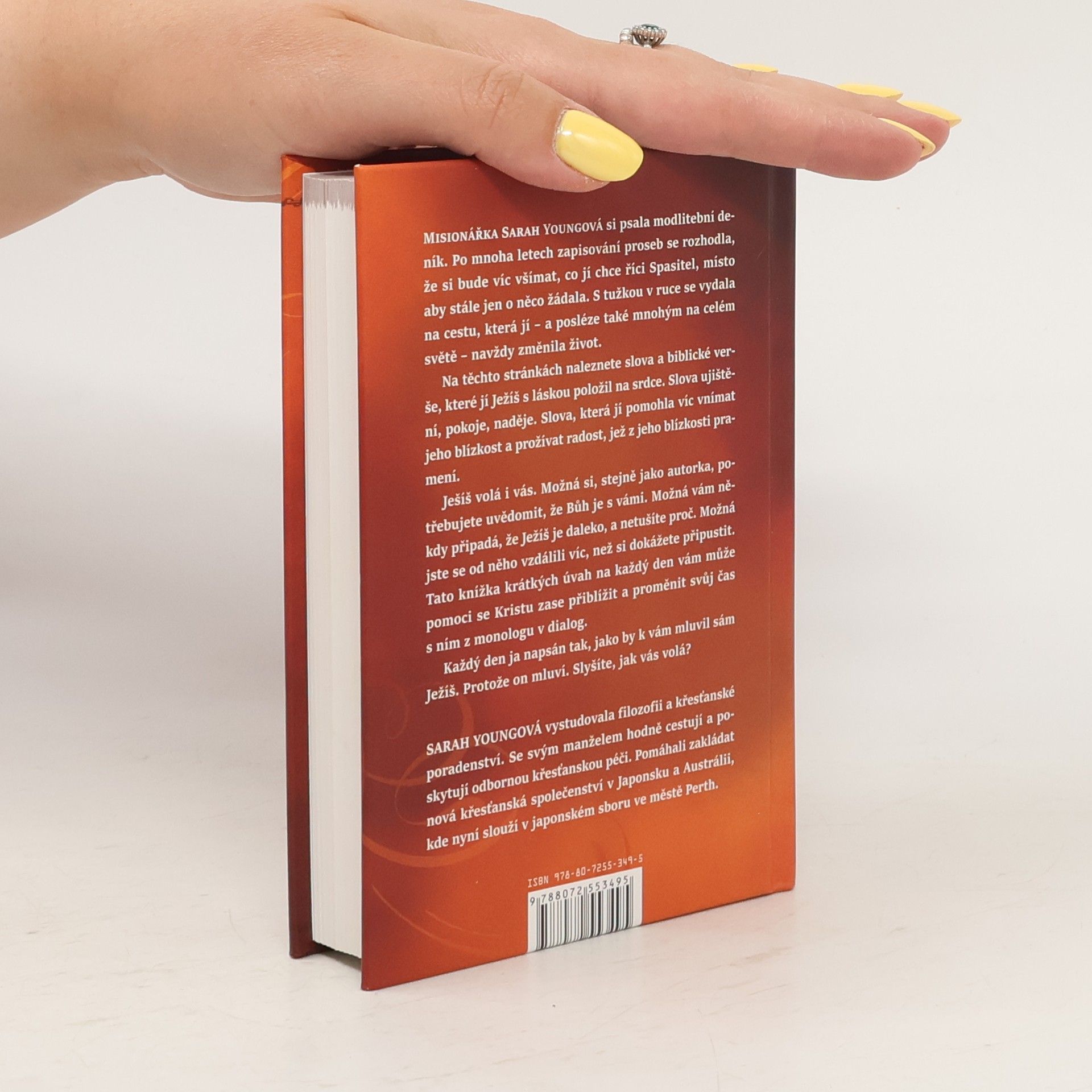 Misionářka Sarah Youngová si psala modlitební deník. Po mnoha letech zapisování proseb se rozhodla, že si bue víc všímat, co jí chce říci Spasitel, místo aby stále o něco žádala. S tužkou v ruce se vydala na cestu, která jí – a posléze také mnohým na celém světě – navždy změnila život. Na těchto stránkách naleznete slova a biblické verše, které jí Ježíš s láskou položil na srdce. Slova ujištění, pokoje, naděje. Slova, která jí pomohla víc vnímat jeho blízkost a prožívat radost, jež z jeho blízkosti pramení. Ježíš volá i vás. Možná si, stejně jako autorka, potřebujete uvědomit, že Bůh je s vámi. Možná vám někdy připadá, že Ježíš je daleko, a netušíte proč. Možná jste se od něho vzdálili víc, než si dokážete připustit. Tato knížka krátkých úvah na každý den vám může pomoci se Kristu zase přiblížit a proměnit svůj čas s ním z monologu v dialog. Každý den je napsán tak, jako by k vám mluvil sám Ježíš. Protože on mluví. Slyšíte, jak vás volá?