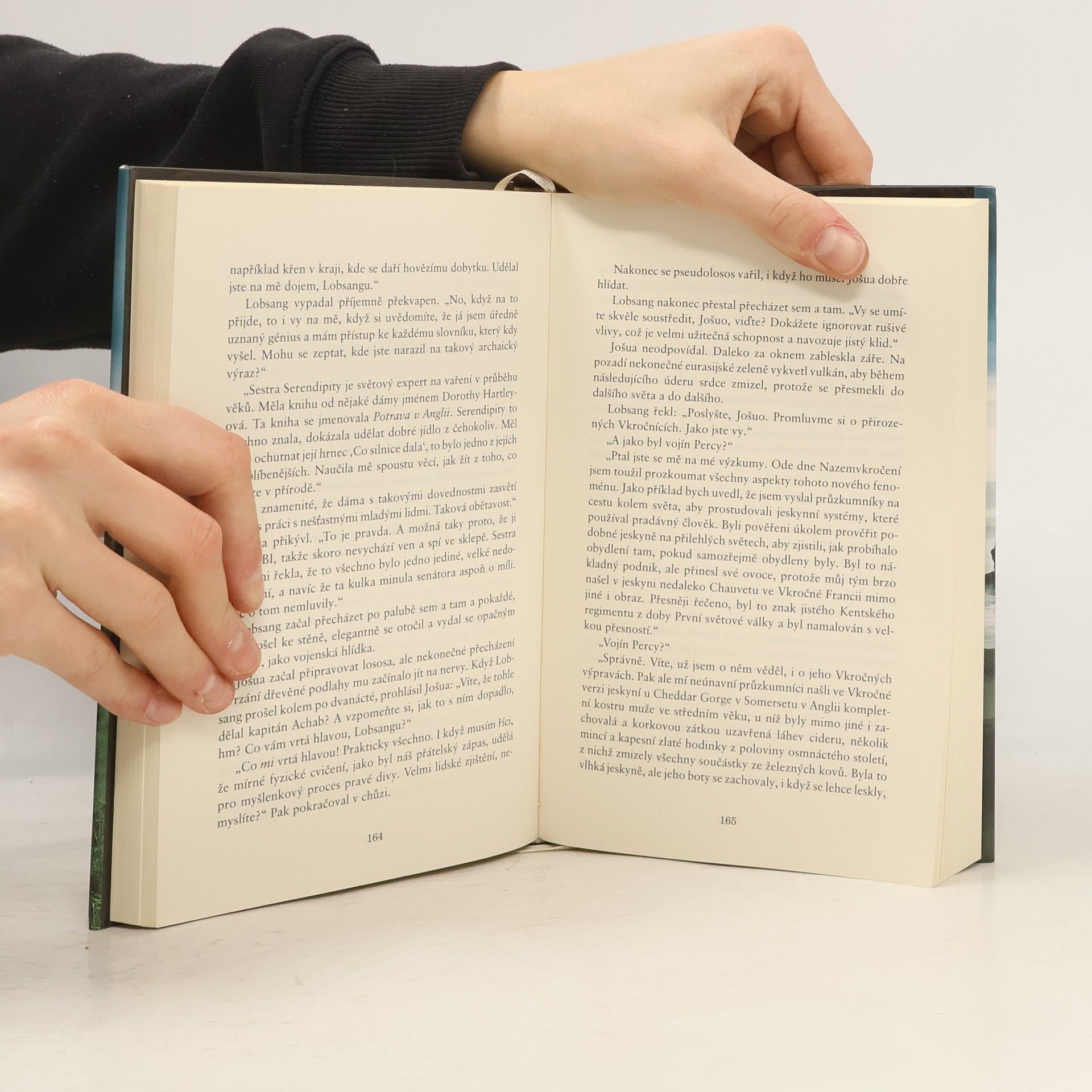 Obvykle, když neměl co na práci, naslouchal Tichu. Tady bylo Ticho velmi slabé. Téměř se ztrácelo ve zvucích obyčejného světa. Chápali vůbec lidé v téhle naleštěné budově, jak jsou hluční? Řev klimatizace a počítačových větráků, slyšitelné, ale nesrozumitelné mumlání mnoha hlasů... tohle byla kancelář TransZemského Institutu, což byla paže Černé Společnosti. Anonymní kanceláři, která byla samý sádrokarton a chrom, dominovalo obrovské logo firmy, šachový kůň. Tohle nebyl Jošuův svět. Nic z toho nebylo z jeho světa. Kdybychom šli skutečně ke kořenům věci, on vlastně ani žádný svět neměl, měl je všechny. Celou Dlouhou Zemi.