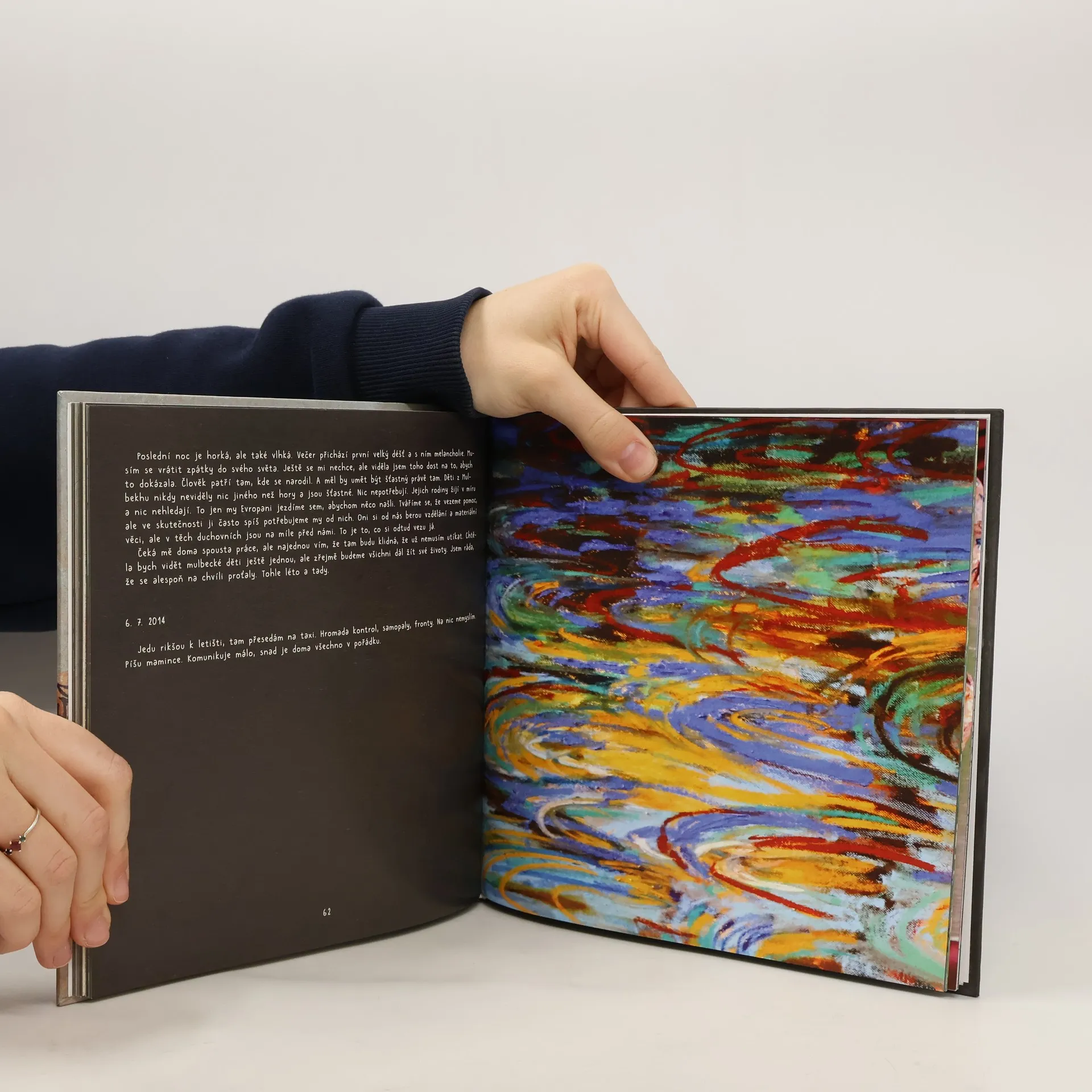 Autentické zápisky přední české písničkářky, zpěvačky a výtvarnice o její cestě do Malého Tibetu, kde více než měsíc učila ve škole děti výtvarnou výchovu a hru na kytaru a též cestovala. Den pod dni nejen ve slovech ale především v drobných skicách, akvarelech, kresbách, malbách a grafikách.