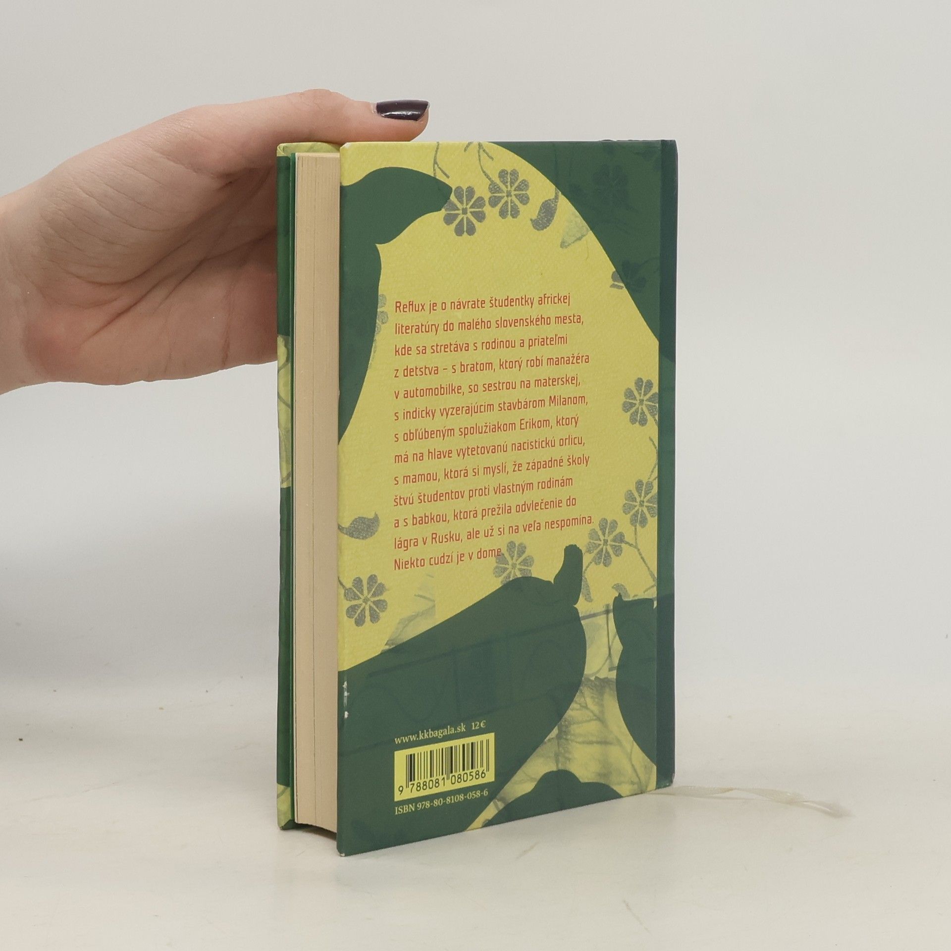 Reflux je o návrate študentky africkej literatúry do malého slovenského mesta, kde sa stretáva s rodinou a priateľmi z detstva – s bratom, ktorý robí manažéra v automobilke, so sestrou na materskej, s indicky vyzerajúcim stavbárom Milanom, s obľúbeným spolužiakom Erikom, ktorý má na hlave vytetovanú nacistickú orlicu, s mamou, ktorá si myslí, že západné školy štvú študentov proti vlastným rodinám a s babkou, ktorá prežila odvlečenie do lágra v Rusku, ale už si na veľa nespomína. Niekto cudzí je v dome.