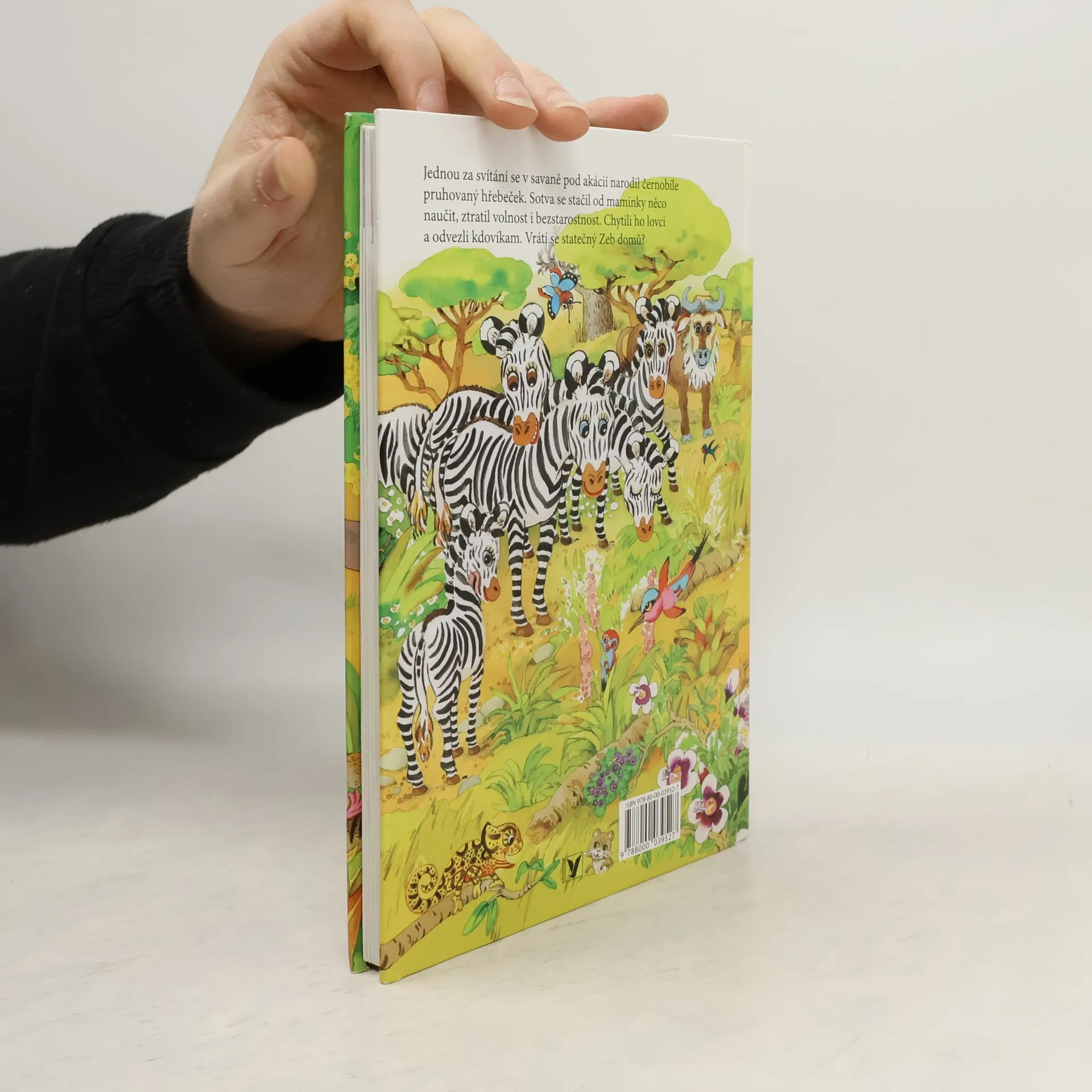 Jednou za svítání se v savaně pod rozložitou akácií narodil černobíle pruhovaný hřebeček Zeb. Volnost a bezstarostnost zvídavého mláděte však brzy ukončí lovci – Zeba chytí a odvezou daleko pryč. Tak začíná dlouhá a strastiplná Zebova cesta. Příběh o malé zebře přináší nejen napínavé vyprávění, ale i spoustu zajímavostí o africké přírodě a životě divokých zvířat