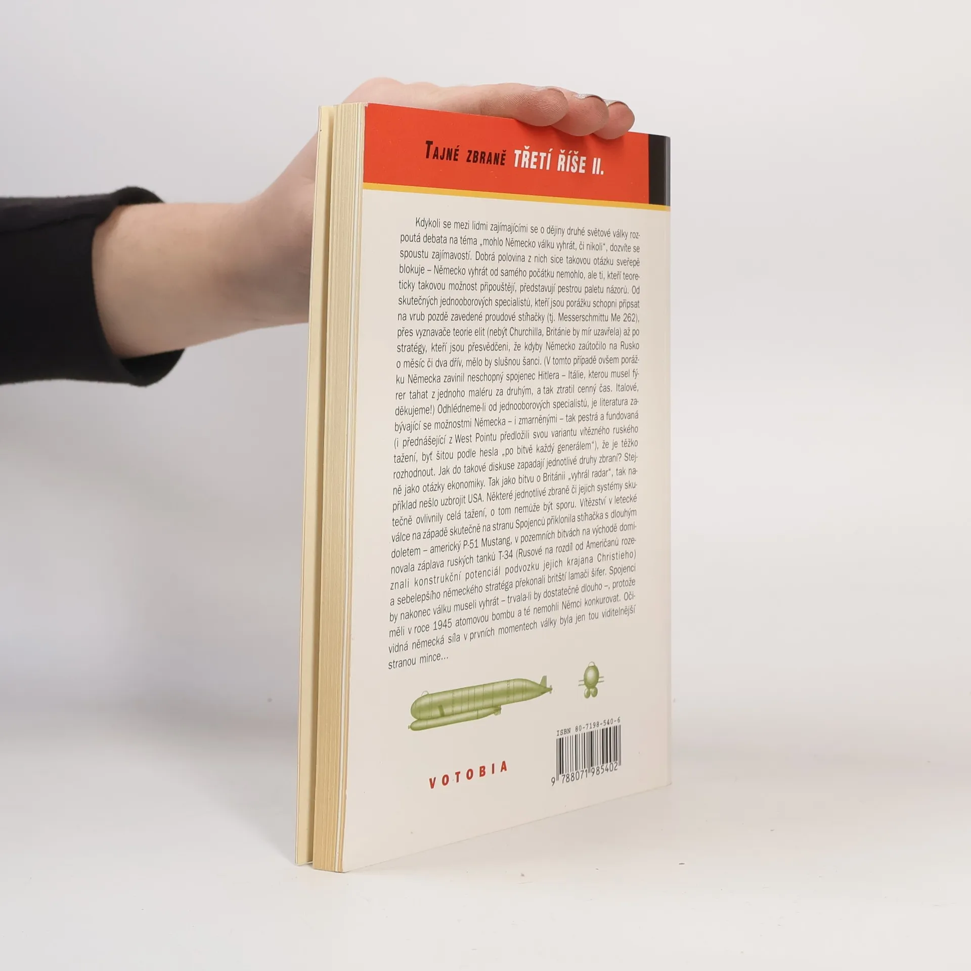 V letech 1939-1945 se v Německu vedle technicky zdařilých a pokročilých zbrojních projektů objevily i kuriozity, které rozhodně nemohly ovlivnit průběh 2. světové války. Dočteme se o vývoji, konstrukci a bojovém nasazení letounové střely V-1, nadějné raketové střely V-2, samonaváděcí protiletadlové střely Enzian, přímé předchůdkyně taktických a protitankových střel rakety X-4 či protilodní raketové pumy Henschel a mnoha dalších zbraní. Autor krátce popisuje i německý "Program U", projekt na výrobu jaderných zbraní. Fotografie, kresby, řezy, tabulky s technickými údaji Druhá část studie o mimořádně utajovaných vojenských projektech a konstrukcích,které vyvíjelo Německo za 2. světové války Je nesporné, že němečtí letečtí konstruktéři, stavitelé ponorek, ale i inženýři a technici z mnoha dalších oborů patřili k průkopníkům a špičce světového vývoje. Ale ani časnější nasazení prvního a nejvýkonnějšího proudového letounu 2. světové války Messerschmitt Me 262, nejmodernějších typů ponorek či dalších pokročilých zbrojních systémů by zřejmě, v protikladu k nesmírnému vědeckému a výrobnímu potenciálu Spojenců, neovlivnilo výsledek 2. světové války. Fotografie, kresby, řezy, schémata, seznam literatury. W1e 20030217 kyliank Studie se zabývá utajovanými vojenskými projekty, které realizovalo Německo za 2. světové války