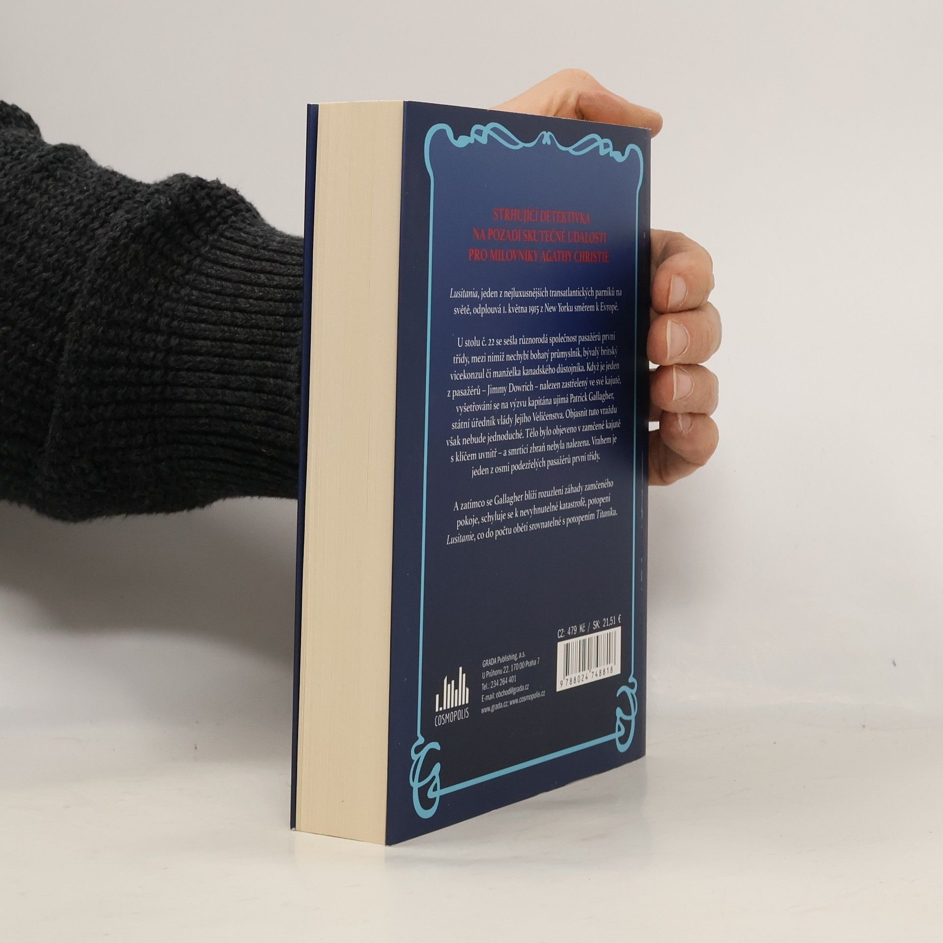 Lusitania, jeden z nejluxusnějších transatlantických parníků na světě, odplouvá 1. května 1915 z New Yorku k Evropě, kde před nedávnem vypukla první světová válka. U stolu č. 22 v první třídě se sešla různorodá společnost movitých pasažérů mezi nimiž nechybí bohatý průmyslník, bývalý britský vicekonzul či manželka kanadského důstojníka. Jednoho dne je v zamčené kajutě s klíčem uvnitř nalezena mrtvola a smrtící zbraň se nenajde. Na výzvu kapitána se vyšetřování vraždy ujímá Patrick Gallagher, státní úředník vlády Jejího Veličenstva. Den po dni se blíží rozuzlení záhady zamčeného pokoje, ale také katastrofa potopení Lusitanie, co do počtu obětí srovnatelná s potopením Titaniku o tři roky dříve.