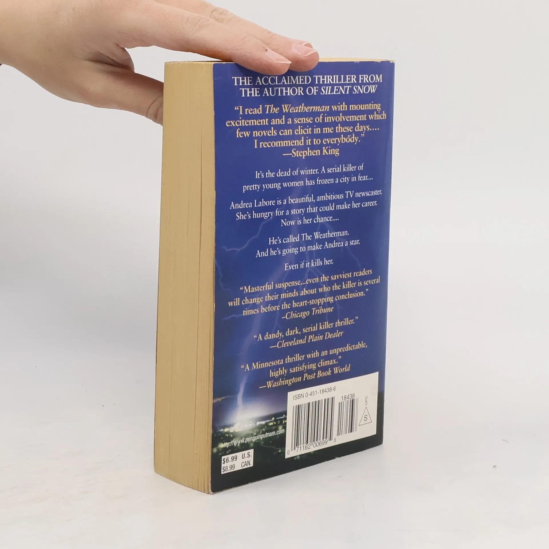 A cruel but clever serial killer called the Weatherman is about to make TV newscaster Andrea Labore a star, but she might be cool to fame's inevitable cost. Reissue.
