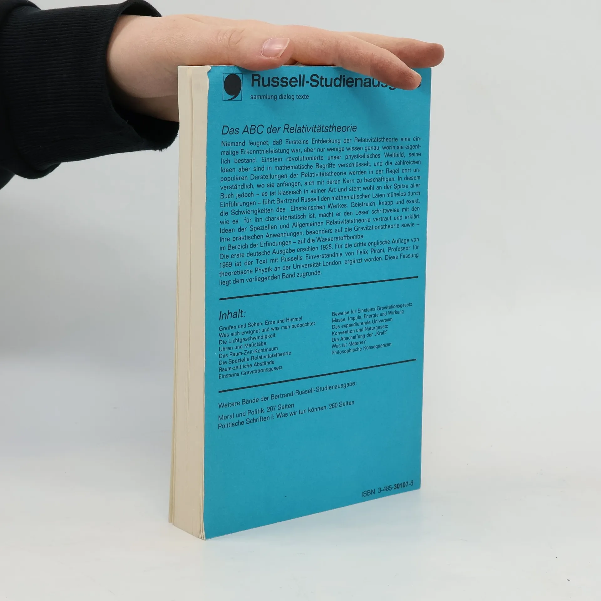 Es stimmt zwar, schreibt Bertrand Russell zu Beginn, daß es unzählige populäre Darstellungen der Relativitätstheorie gibt, aber im allgemeinen hören sie genau an dem Punkt auf, verständlich zu sein, wo sie anfangen, etwas von Bedeutung zu sagen. Dem hat Russell abgeholfen, und nicht ohne Grund avancierte sein 'ABC der Relativitätstheorie' zu einem der klassischen wissenschaftlichen Sachbücher unseres Jahrhunderts. Eingängig, über weite Strecken sogar unterhaltsam trägt Russell die Grundideen der Allgemeinen und Speziellen Relativitätstheorie vor, wobei er fast stets von Alltagserfahrungen ausgeht. Russell macht nirgendwo sachliche Abstriche und setzt doch kaum mehr voraus als gesunden Menschenverstand - dessen Reichweite er damit geistreich demonstriert. Veröffentlicht wurde diese Schrift erstmals 1925. Für die dritte englische Auflage von 1969 wurde der Text mit Russells Einverständnis von Felix Pirani, Professor für theoretische Physik an der Universität London, ergänzt. Auf dieser Fassung beruht die vorliegende deutsche Übersetzung.
