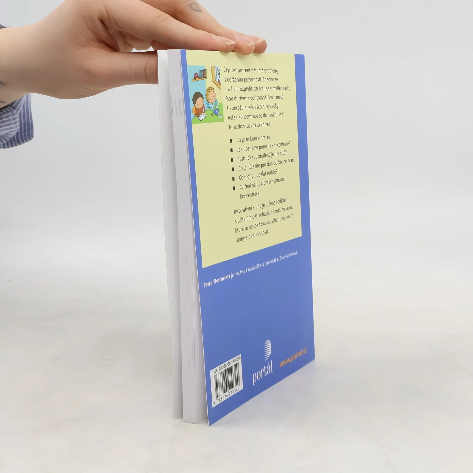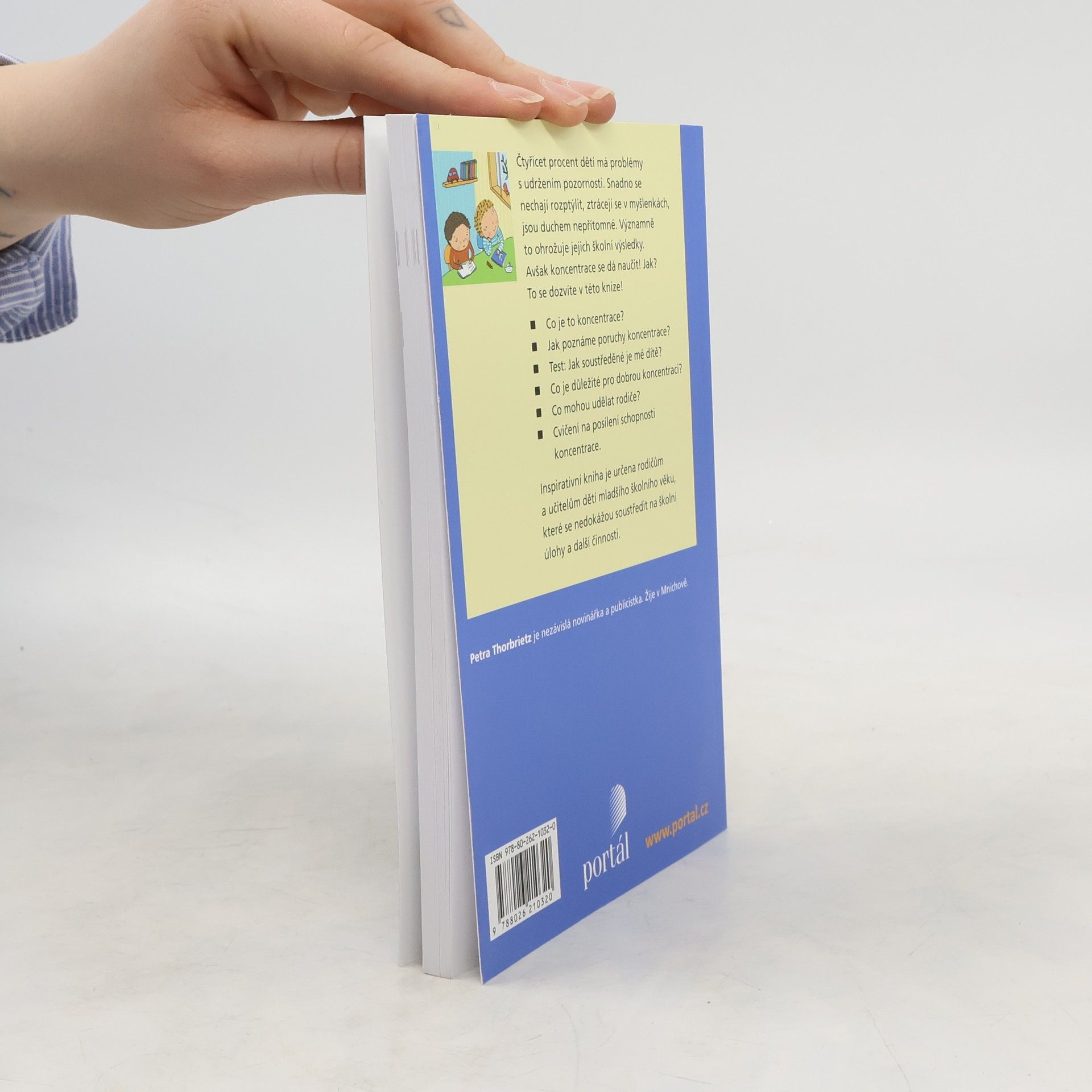Autorka vychází z předpokladu, že dnešní děti čelí takové řadě podnětů a nejrůznějších lákadel, že je pro ně stále obtížnější vnímat konkrétní téma, soustředit se na vyučování, zvládat plynule a bez zbytečných odkladů domácí úkoly. Výzkumy prokázaly, že se soustředěním má vážné problémy kolem 40 % dětí. Bez koncentrace však nelze uspět. Tento rádce názorně ukazuje, co se vlastně odehrává v dětské hlavě, jak lze rozpoznat nedostatky v soustředění a jak mohou rodiče pomoci svým dětem, aby se dokázaly lépe koncentrovat – ať už vytvořením správného prostředí, dostatečnou tělesnou aktivitou nebo praktickými cvičeními. Test, rozdělený podle věkových skupin, pomůže rodičům určit, kde leží potenciál jejich dítěte a jaké jsou jeho slabé stránky.