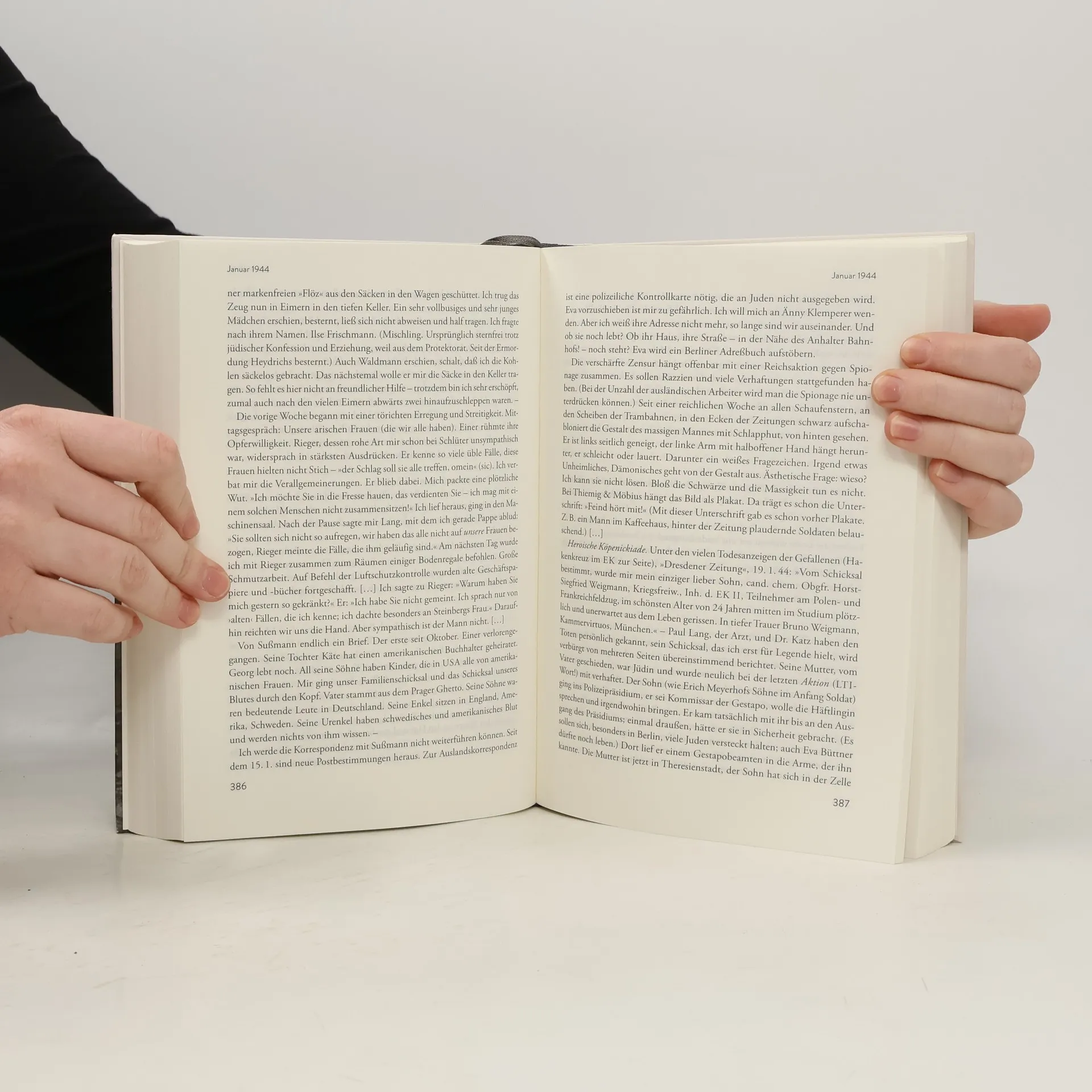 „Die Tagebücher stellen alles in den Schatten, was jemals über die NS-Zeit geschrieben wurde.“ Die Zeit Der Weltbestseller, dessen Bedeutung nur noch mit dem Tagebuch der Anne Frank zu vergleichen ist, erscheint 70 Jahre nach dem Ende des Zweiten Weltkriegs in neuer, bibliophiler Ausstattung und in revidierter Textgestalt. Victor Klemperers Aufzeichnungen aus der Zeit des NS-Terrors haben sich als unverzichtbare und unvergleichliche Zeitdokumente erwiesen. „Beobachten, notieren, studieren“ – diese ständige Forderung an sich selbst löste er mit seinen minutiösen Notizen über den Alltag der Judenverfolgung ein. Er sah sich als „Kulturgeschichtsschreiber der Katastrophe“ und wurde darüber hinaus zum Chronisten von Schicksalen und Familientragödien, die sonst vergessen wären. Tagtäglich schrieb er, trotz ständiger Todesgefahr, Zwangsarbeit und entwürdigender Existenz im „Judenhaus“. Er notierte Gerüchte, Witze, Nachrichten. Immer öfter mussten seine Frau Eva und er von vertraut gewordenen Menschen Abschied nehmen, immer öfter fiel im Zusammenhang mit Judentransporten der Name Theresienstadt. 1942 hörte Klemperer zum ersten Mal vom Ort des Grauens schlechthin: Auschwitz.