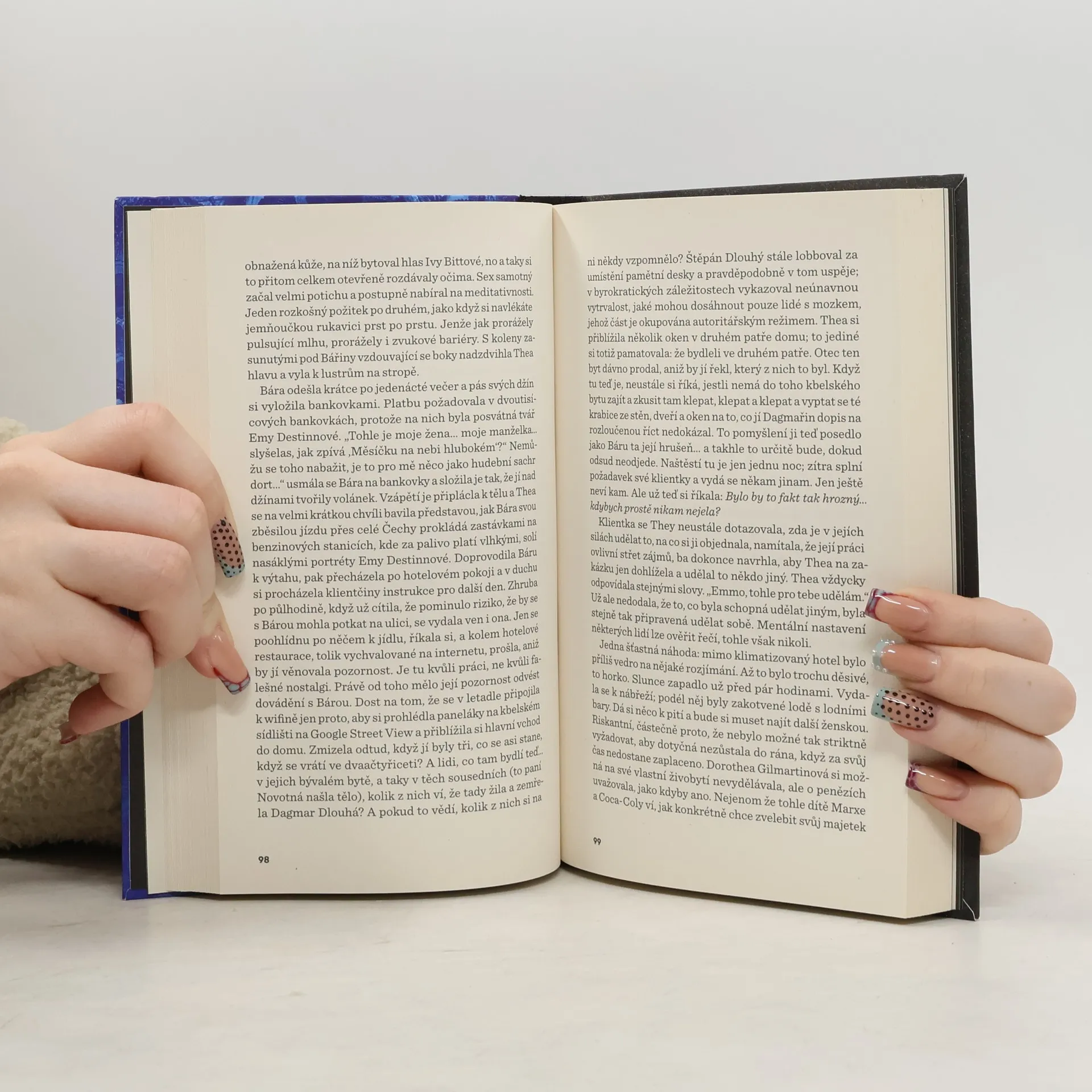 Děj románu je – jak tomu je u autorčiných próz obvyklé – spletitý, ne-li přímo snový. Když protagonistka knihy Hero Tojosoa zdráhavě přijme pozvání své dávné přítelkyně Sofie a vydá se s ní a dalšími kamarádkami na dámskou jízdu do Prahy, netuší, že se ocitne ve městě, jež sis nic netušícími turisty rádo zahrává, ve městě, které je živoucí bytostí, jež si člověka snadno omotá kolem prstu nebo jej lhostejně odkopne. Kniha, kterou si s sebou Hero přiveze, jako by nějak podivně deformovala její mysl: text knihy se mění v závislosti na tom, kdy ji kdo čte, a odhaluje stále nové, překvapivé příběhy fiktivních Pražanů z minulosti i současnosti, jež se pak zvláštně odrážejí v realitě. Na skupinku kamarádek se navíc nalepí nezvaní společníci; a když se pak nečekaně zjeví žena, na niž by Hero i Sofie nejraději zapomněly, začnou se dít podivuhodné věci. Fantaskní kaleidoskopický román se zamýšlí nad hranicemi mezi iluzí a klamem, skutečností a interpretací, a ukazuje, jak ošidné může být vyprávění o místech, o lidech i o historii. Nakolik je příběh ovlivněn svým čtenářem, a naopak? A je v roztržce mezi přáteli lepší být slunečníkem, nebo sekerou?