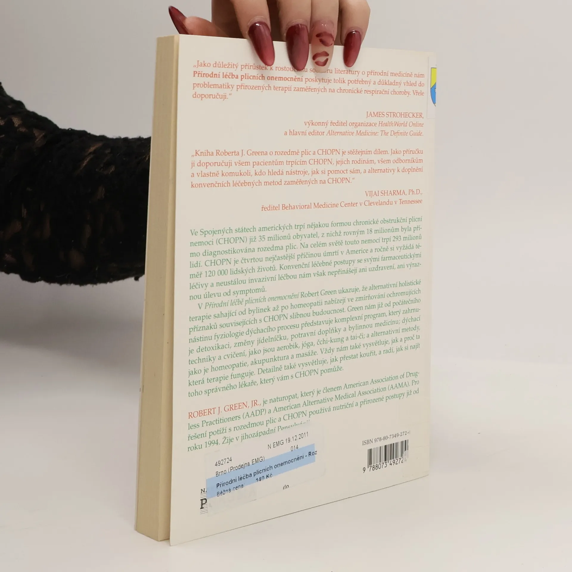Kniha o přírodní léčbě rozedmy plic a chronických obstrukčních plicních nemocí ukazuje, že alternativní holistické terapie, sahající od bylinek až po homeopatii, nabízejí ve zmírňování ochromujících příznaků souvisejících s CHOPN slibnou budoucnost. Green nám již od počátečního nástinu fyziologie dýchacího procesu představuje komplexní program, který zahrnuje detoxikaci, změny jídelníčku, potravní doplňky a bylinnou medicínu; dýchací techniky a cvičení, jako jsou aerobik, jóga, čchi-kung a tai-či; a alternativní metody jako je homeopatie, akupunktura a masáže. Knihu doporučujeme všem pacientům trpícím CHOPN, jejich rodinám, všem odborníkům a vlastně komukoli, kdo hledá nástroje, jak si pomoci sám, a alternativy k doplnění obvyklých léčebných metod zaměřených na CHOPN.