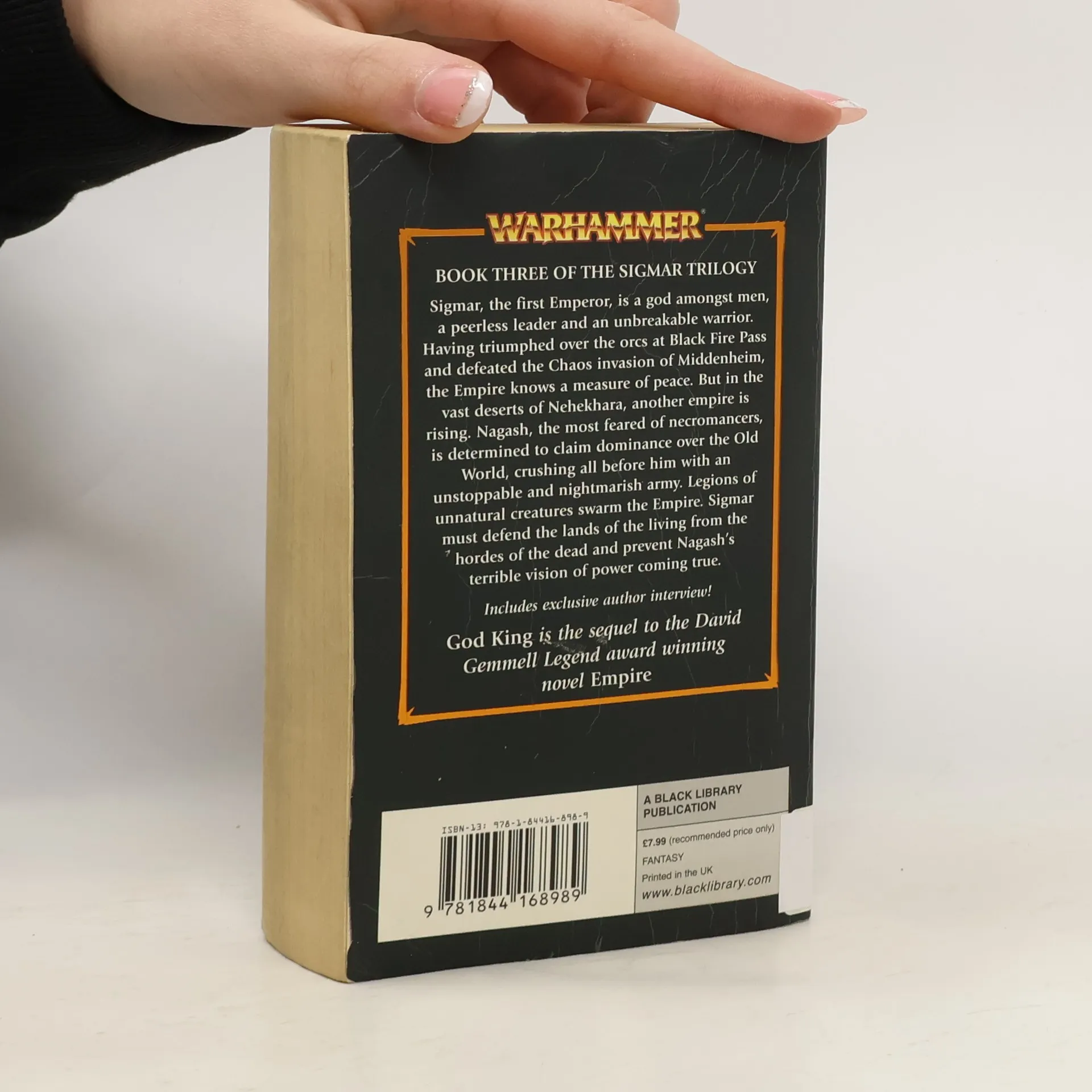 Sigmar, the first emperor, is a god amongst men, a peerless leader and an unbreakable warrior. Having triumphed over the orcs at Black Fire Pass and defeated the Chaos invasion of Middenheim, the Empire knows a measure of peace. But in the vast deserts of Nehekhara, another empire is rising born of madness and destruction.