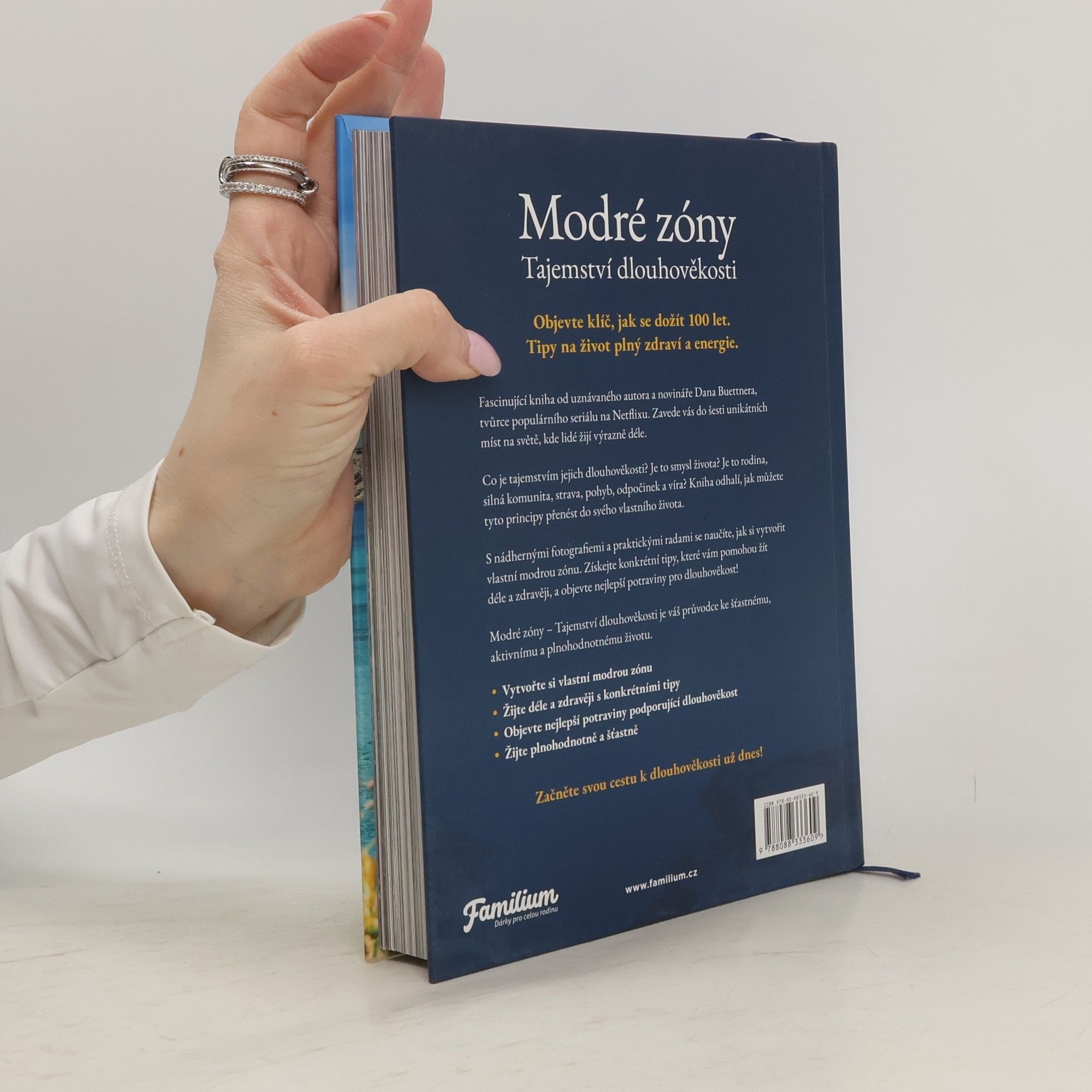 Objevte klíč, jak se dožít 100 let. Tipy na život plný zdraví a energie. Od uznávaného autora a novináře Dana Buettnera, tvůrce populárního seriálu na Netflixu, přichází fascinující kniha, která vás zavede do šesti unikátních míst na světě, kde lidé žijí výrazně déle. Co je tajemstvím jejich dlouhověkosti? Je to smysl života? Rodina, víra, silná komunita, pohyb, odpočinek a strava? Tato kniha odhalí, jak můžete tyto principy přenést do svého vlastního života.S nádhernými fotografiemi a praktickými radami se naučíte, jak si vytvořit vlastní modrou zónu. Získejte konkrétní tipy, které vám pomohou žít déle a zdravěji, a objevte nejlepší potraviny pro dlouhověkost! Modré zóny: Tajemství dlouhověkosti je váš průvodce ke šťastnému, aktivnímu a plnohodnotnému životu. Vytvořte si vlastní modrou zónu Žijte déle a zdravěji s konkrétními tipy Objevte nejlepší potraviny pro dlouhověkost Žijte plnohodnotně a šťastně Začněte svou cestu k dlouhověkosti už dnes!