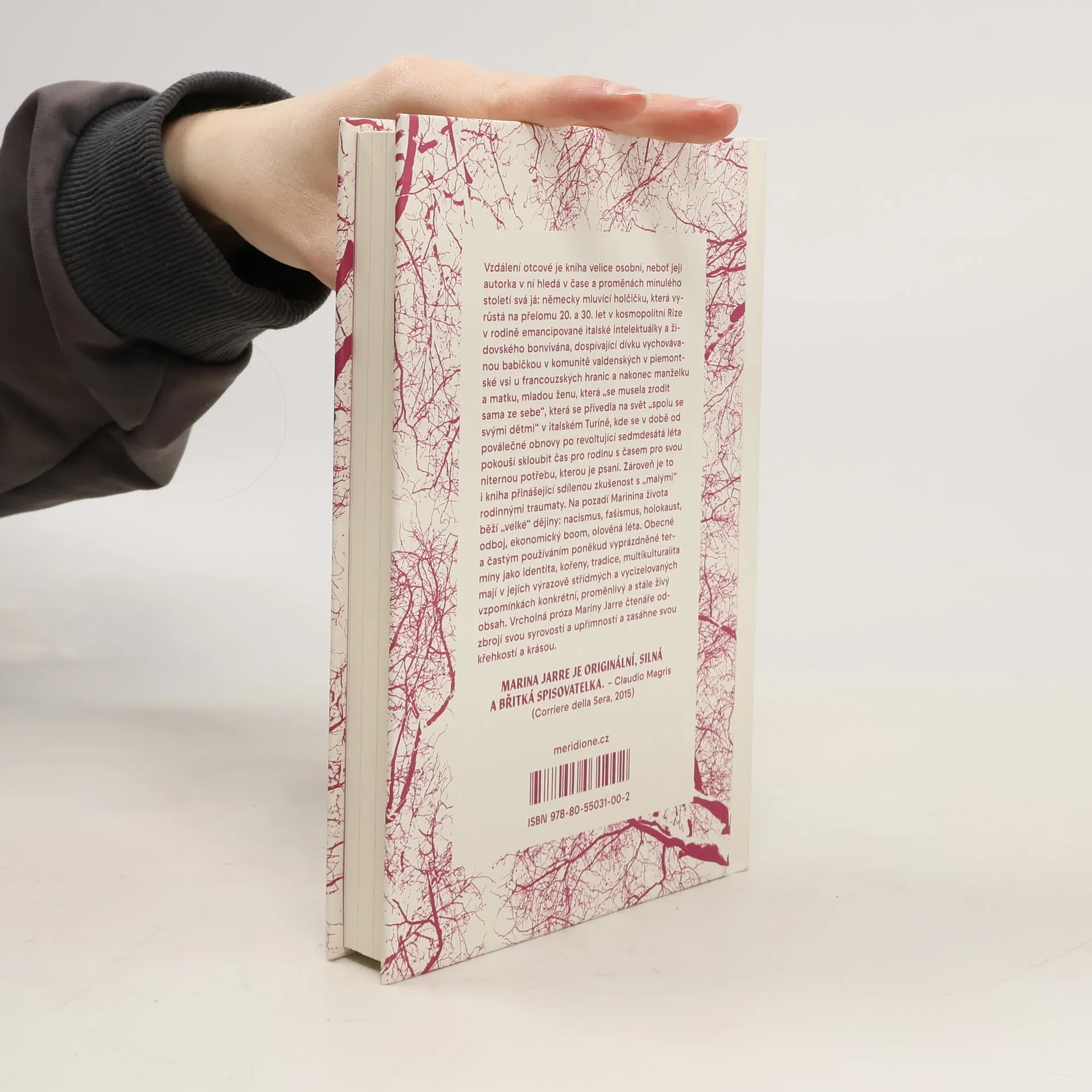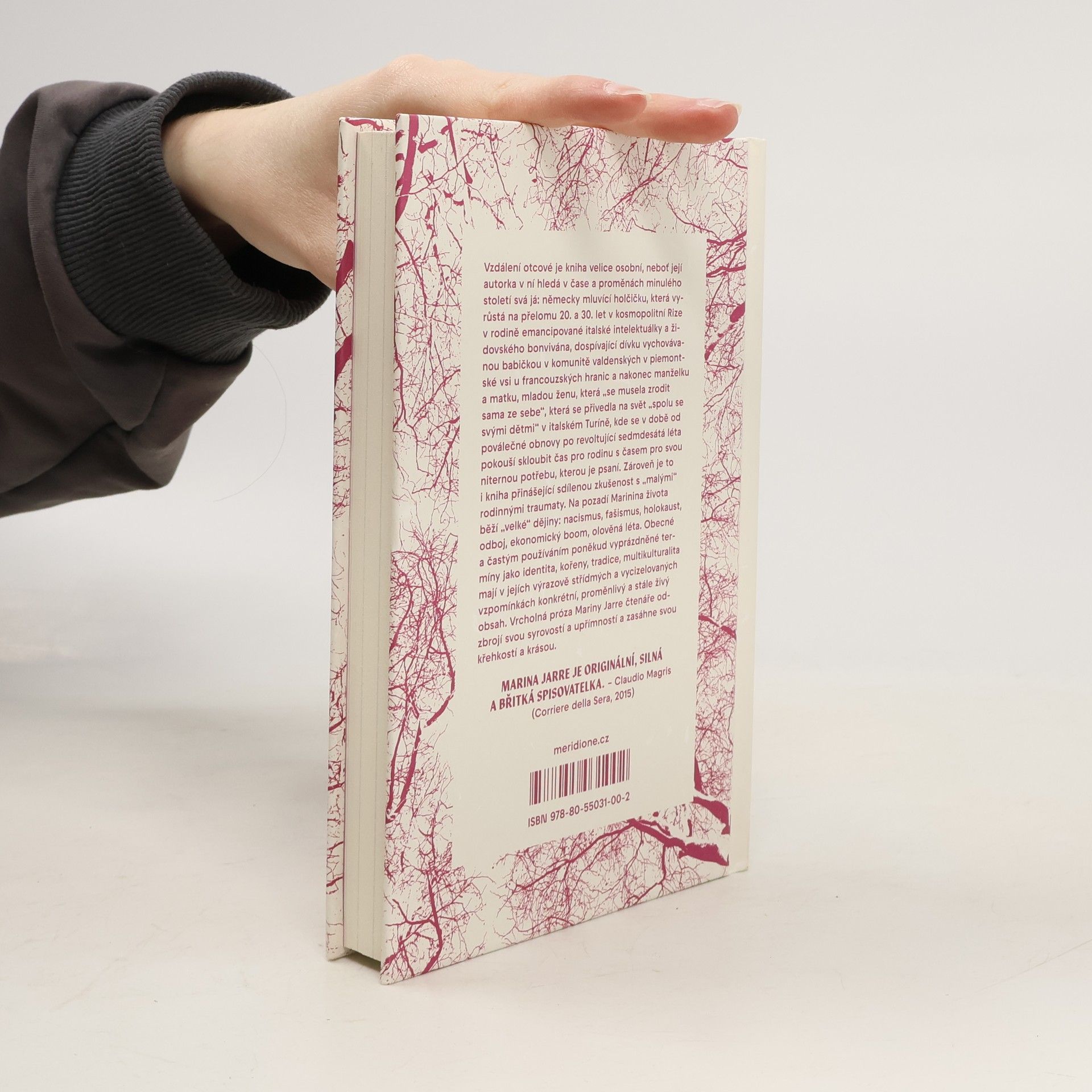 Mezi Rigou a Turínem, mezi židovským otcem a matkou protestantkou, mezi němčinou a italštinou, mezi literaturou a rodinou. Intimní život na pozadí velkých dějin. Vzdálení otcové je kniha velice osobní, neboť její autorka v ní hledá v čase a proměnách minulého století svá já: německy mluvící holčičku, která vyrůstá na přelomu 20. a 30. let v kosmopolitní Rize v rodině emancipované italské intelektuálky a židovského bonvivána, dospívající dívku vychovávanou babičkou v komunitě valdenských v piemontské vísce u francouzských hranic a nakonec manželku a matku, mladou ženu, která „se musela zrodit sama ze sebe“, která se přivedla na svět „spolu se svými dětmi“ v italském Turíně, kde se v době od poválečné obnovy po revoltující sedmdesátá léta pokouší skloubit čas pro rodinu s časem pro svou niternou potřebu, kterou je psaní. Zároveň je to i kniha přinášející sdílenou zkušenost s „malými“ rodinnými traumaty. Na pozadí Marinina života běží „velké“ dějiny: nacismus, fašismus, holokaust, odboj, ekonomický boom, olověná léta. Obecné a častým používáním poněkud vyprázdněné termíny jako identita, kořeny, tradice, multikulturalita mají v jejích výrazově střídmých a vycizelovaných vzpomínkách konkrétní, proměnlivý a stále živý obsah. Vrcholná próza Mariny Jarre čtenáře odzbrojí svou syrovostí a upřímností a zasáhne svou křehkostí a krásou.