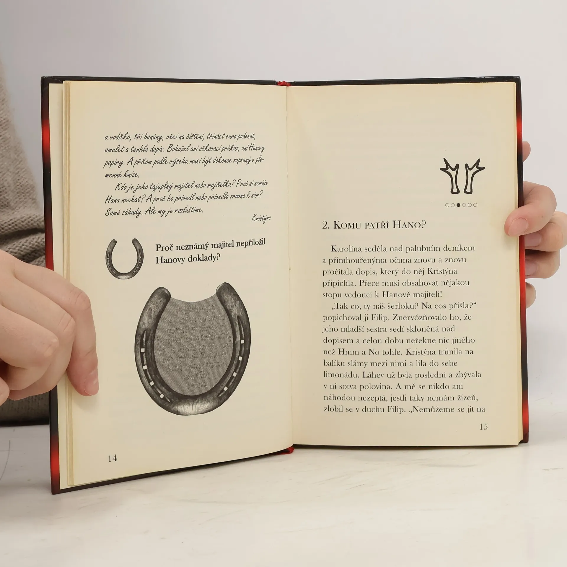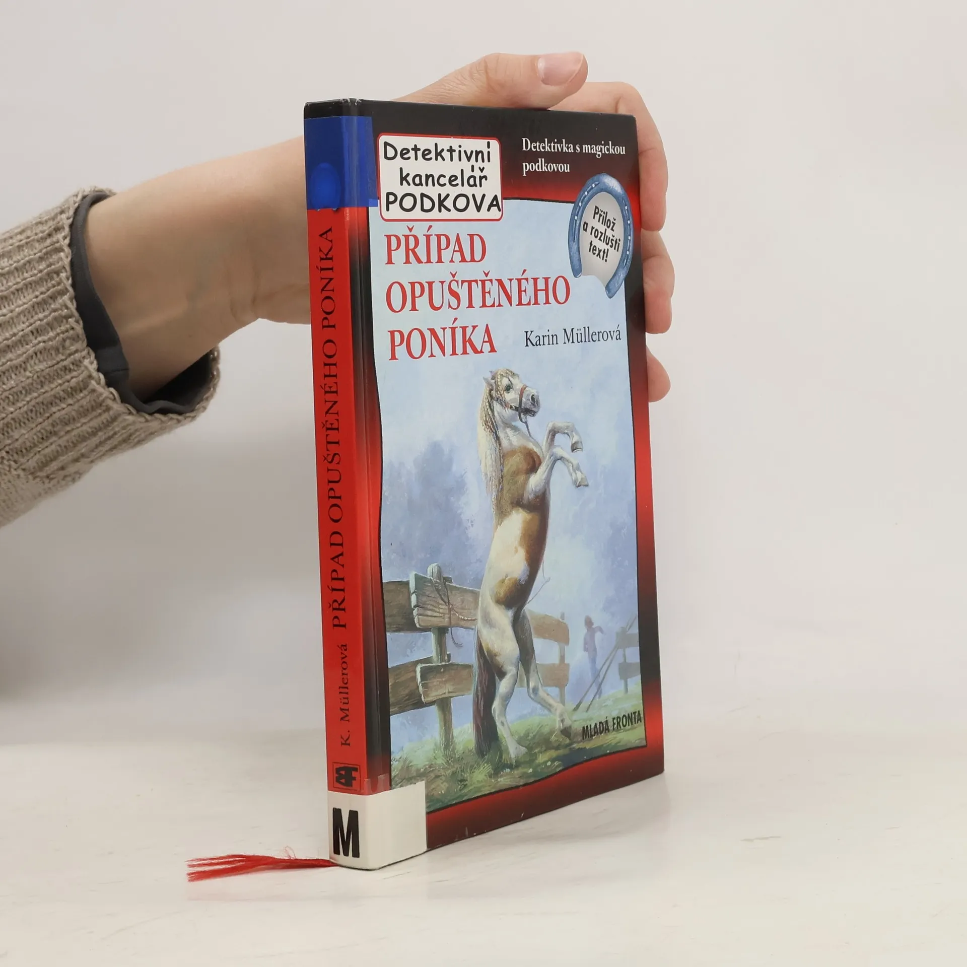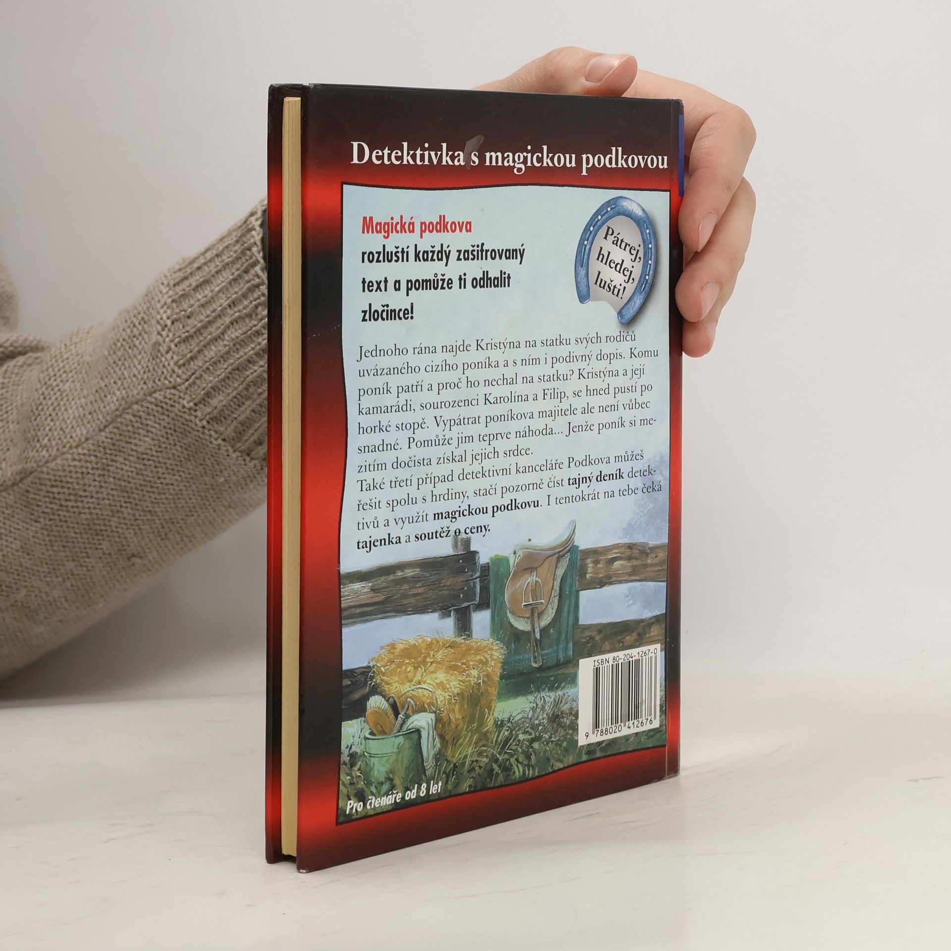 Detektivka s magickou podkovou. Magická podkova rozluští každý zašifrovaný text a pomůže ti odhalit zločince! Jednoho rána najde Kristýna na statku svých rodičů uvázaného cizího poníka a s ním i podivný dopis. Komu poník patří a proč ho nechal na statku? Kristýna a její kamarádi, sourozenci Karolína a Filip, se hned pustí po horké stopě. Vypátrat poníkova majitele ale není vůbec snadné. Pomůže jim teprve náhoda... Jenže poník si mezitím dočista získal jejich srdce. Také třetí případ detektivní kanceláře Podkova můžeš řešit spolu s hrdiny, stačí pozorně číst tajný deník detektivů a využít magickou podkovu. I tentokrát na tebe čeká tajenka a soutěž o ceny.