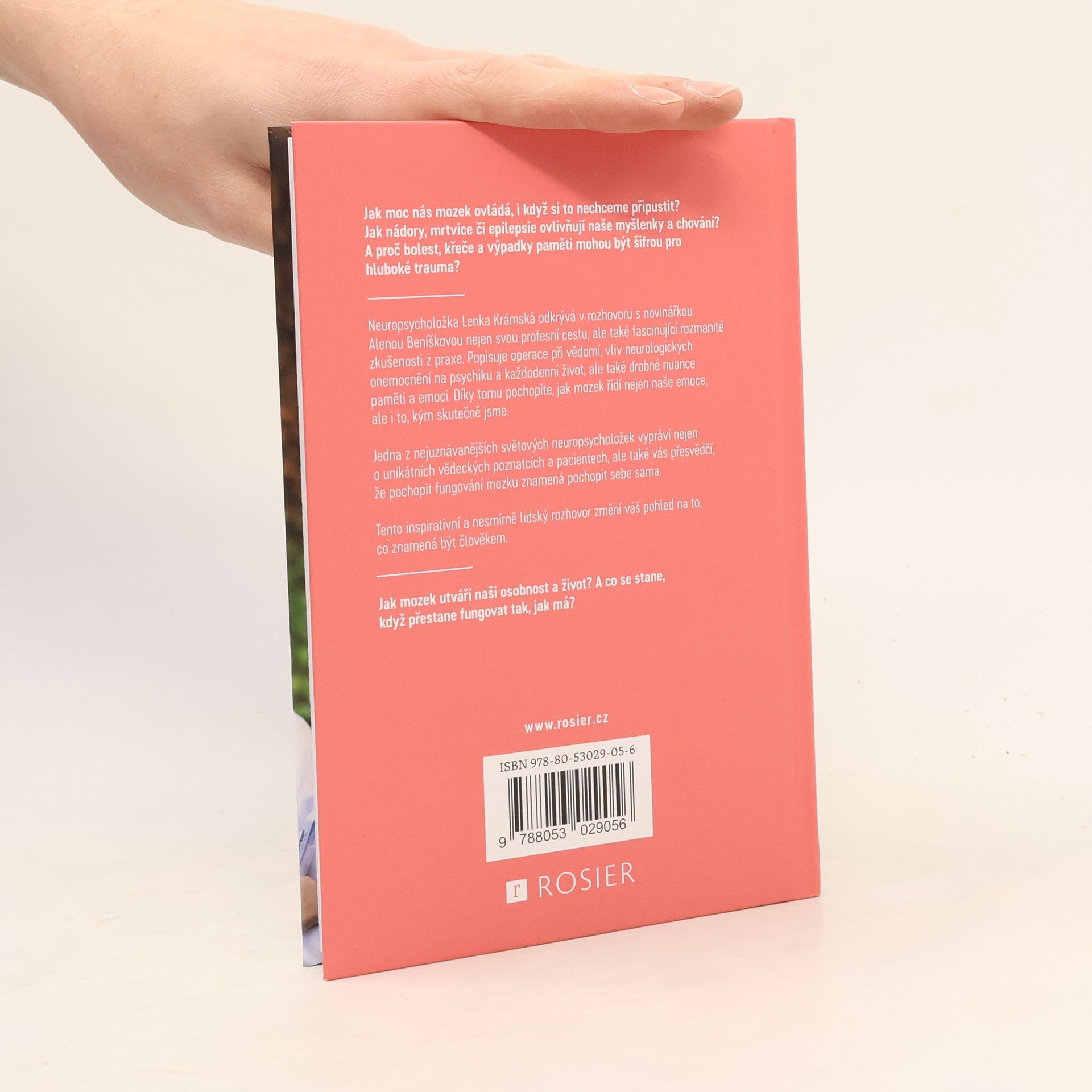 Jak moc nás mozek ovládá, i když si to nechceme připustit? Jak nádory, mrtvice či epilepsie ovlivňují naše myšlenky a chování? Neuropsycholožka Lenka Krámská v rozhovoru s novinářkou Alenou Beníškovou odkrývá fascinující zkušenosti ze své praxe. Popisuje operace při vědomí, vliv neurologických onemocnění na psychiku a každodenní život, a také nuance paměti a emocí. Díky tomu pochopíte, jak mozek řídí naše emoce a formuje naši identitu. Jedna z nejuznávanějších neuropsycholožek sdílí unikátní vědecké poznatky a příběhy pacientů, přičemž ukazuje, že porozumění mozku znamená porozumění sobě samému. Tento inspirativní rozhovor změní váš pohled na lidskou existenci a na to, jak mozek utváří naši osobnost a život. Alena Beníšková, absolventka italského jazyka a mediálních studií, se věnuje psaní o zdraví a má zkušenosti z různých médií. Lenka Krámská, klinická psycholožka a specialistka na neuropsychologii, má více než dvacetiletou praxi a zaměřuje se na diagnostiku a psychoterapii kognitivních a emočních poruch u pacientů s neurologickými onemocněními. Významně přispěla k rozvoji neuropsychologie v České republice a zavedení nových metod do klinické praxe.
