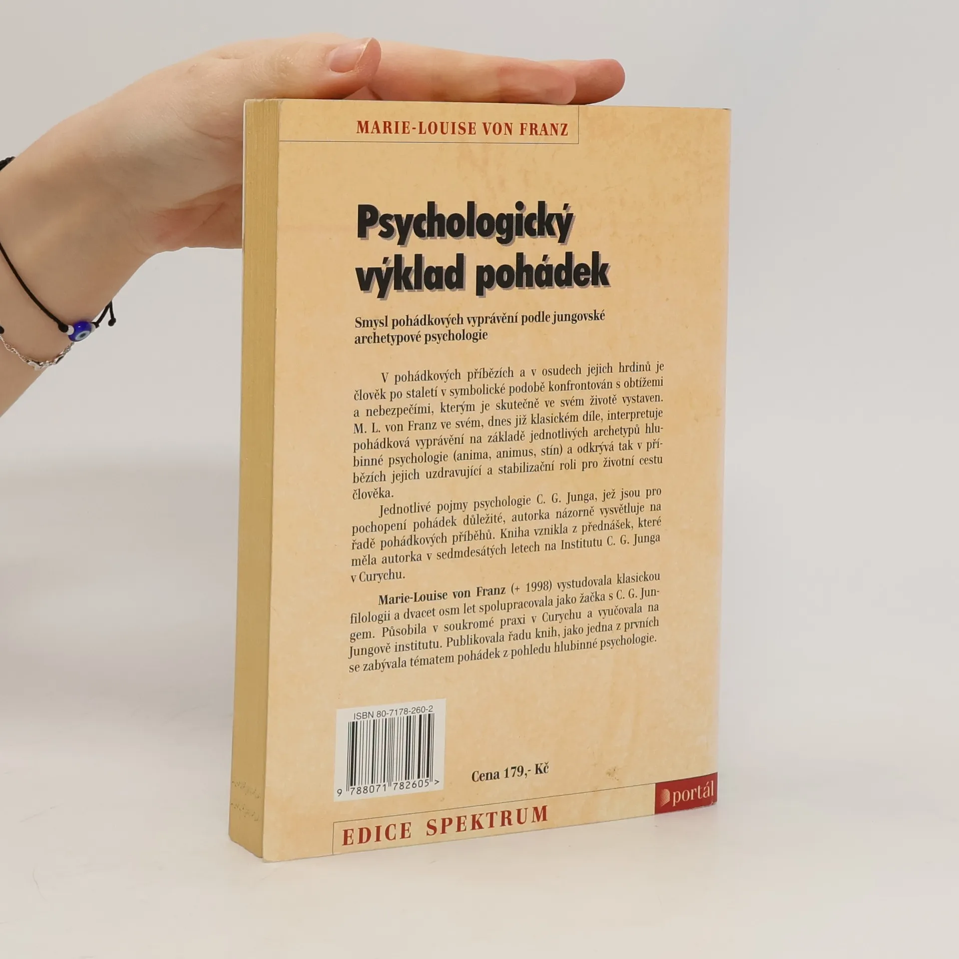 Psychologický výklad pohádek : smysl pohádkových vyprávění podle jungovské archetypové psychologie. Žačka C. G. Junga interpretuje pohádková vyprávění na základě jednotlivých archetypů hlubinné psychologie. V pohádkových příbězích a v osudech jejich hrdinů je člověk po staletí v symbolické podobě konfrontován s obtížemi a nebezpečími, kterým je sám v životě vystaven. M. L. von Franz ve svém, dnes již klasickém díle, interpretuje pohádková vyprávění na základě jednotlivých archetypů hlubinné psychologie a odkrývá tak v příbězích jejich uzdravující a stabilizační roli pro životní cestu člověka. Jednotlivé pojmy psychologie C. G. Junga, jež jsou pro pochopení pohádek důležité, jsou názorně vysvětleny na řadě pohádkových příběhů. Kniha vznikla z přednášek, které měla autorka v sedmdesátých letech na Institutu C. G. Junga v Curychu. 1. vydání