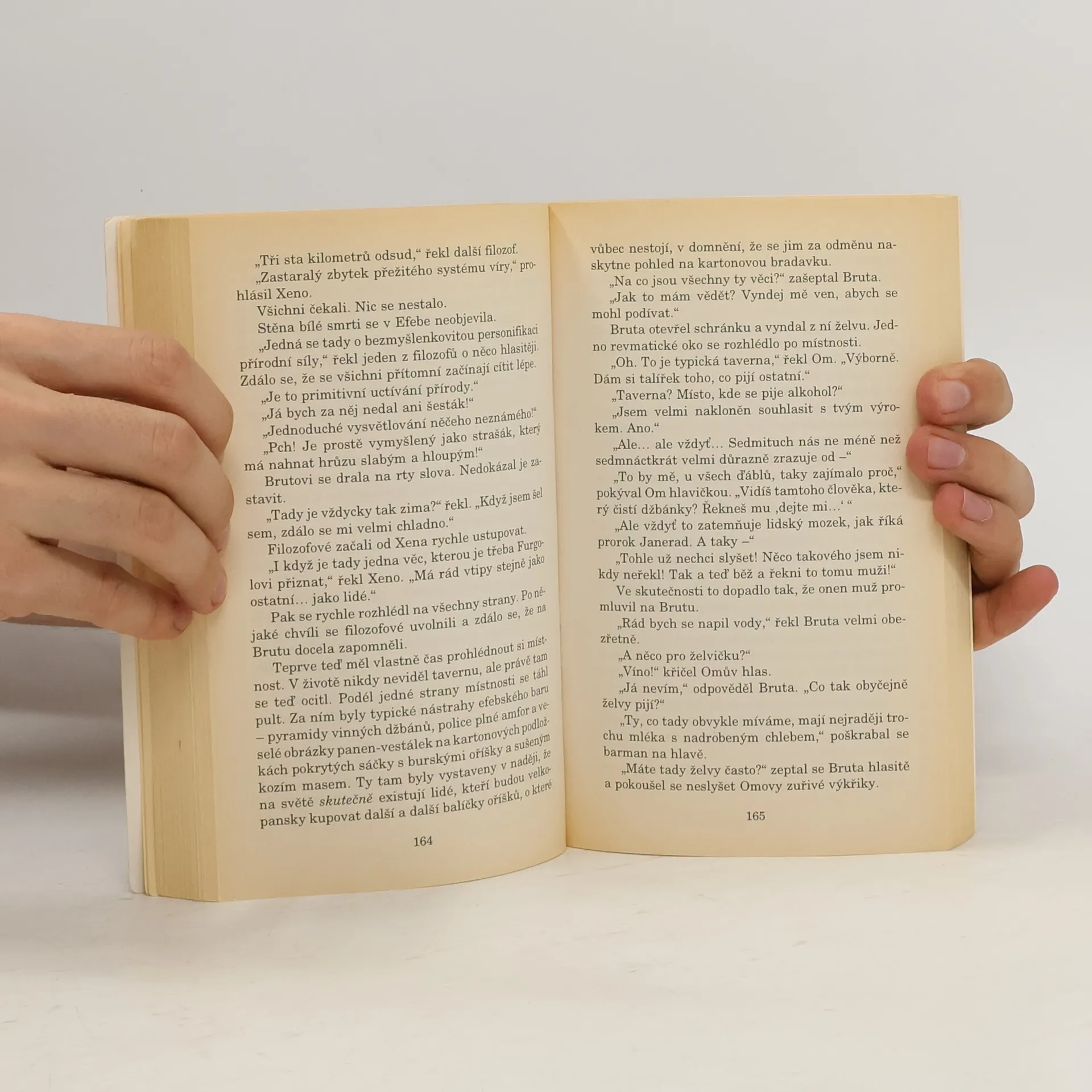 Bruta je vyvolený. Jeho Bůh k němu promluvil, i když se momentálně nacházel ve vtělení želvy. Bruta je prostý mladík, neumí číst. neumí psát. Umí vypěstovat skvělé melouny. Jeho potřeby jsou velmi skrovné. Chce svrhnout mocnou a zkorumpovanou církev. Chce zabránit strašlivé náboženské válce. Chce zabránit bezpráví páchanému na filozofovi, který se odvážil tvrdit, že oproti všem církevním dogmatům Zeměplocha skutečně putuje vesmírem na hřbetě obrovské želvy, nejvíc by si však Bruta přál, aby si jeho Bůh místo něj vyvolil někoho jiného. Dotisk r. 2001, 2007