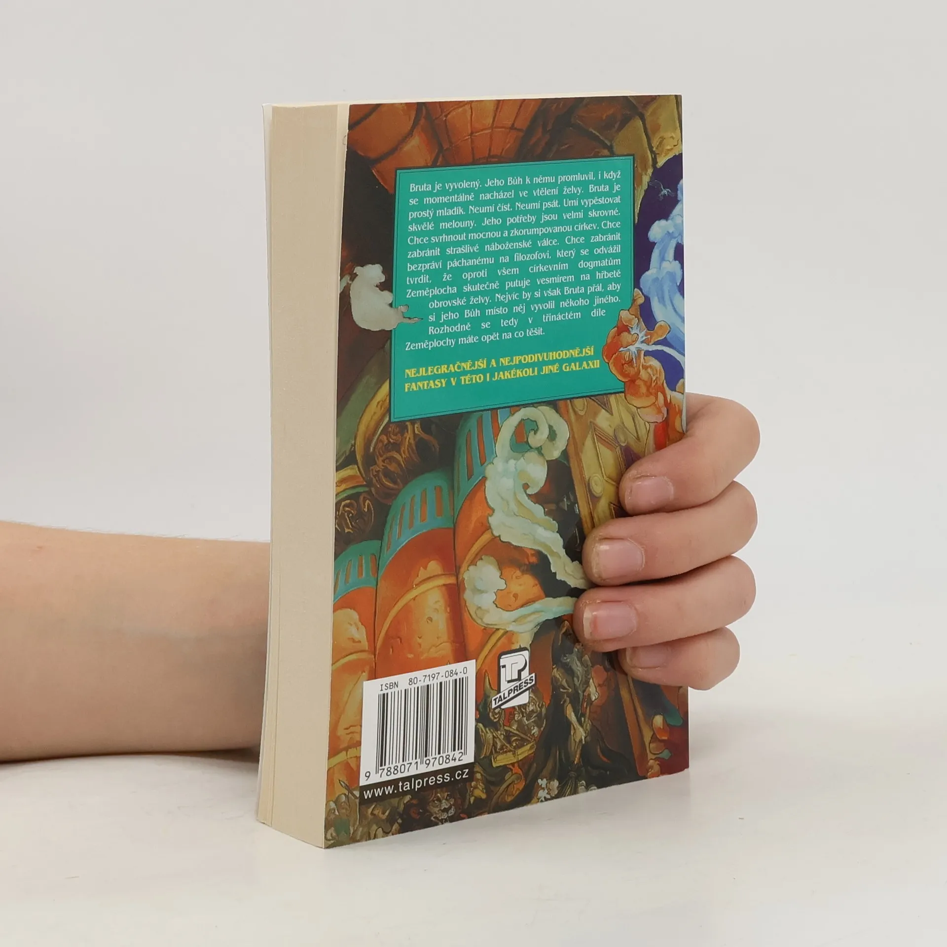 Bruta je vyvolený. Jeho Bůh k němu promluvil, i když se momentálně nacházel ve vtělení želvy. Bruta je prostý mladík, neumí číst. neumí psát. Umí vypěstovat skvělé melouny. Jeho potřeby jsou velmi skrovné. Chce svrhnout mocnou a zkorumpovanou církev. Chce zabránit strašlivé náboženské válce. Chce zabránit bezpráví páchanému na filozofovi, který se odvážil tvrdit, že oproti všem církevním dogmatům Zeměplocha skutečně putuje vesmírem na hřbetě obrovské želvy, nejvíc by si však Bruta přál, aby si jeho Bůh místo něj vyvolil někoho jiného. Dotisk r. 2001, 2007