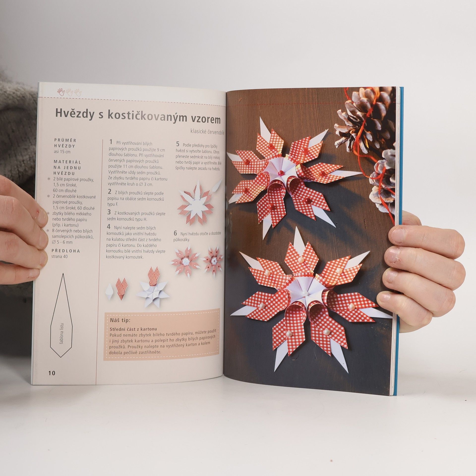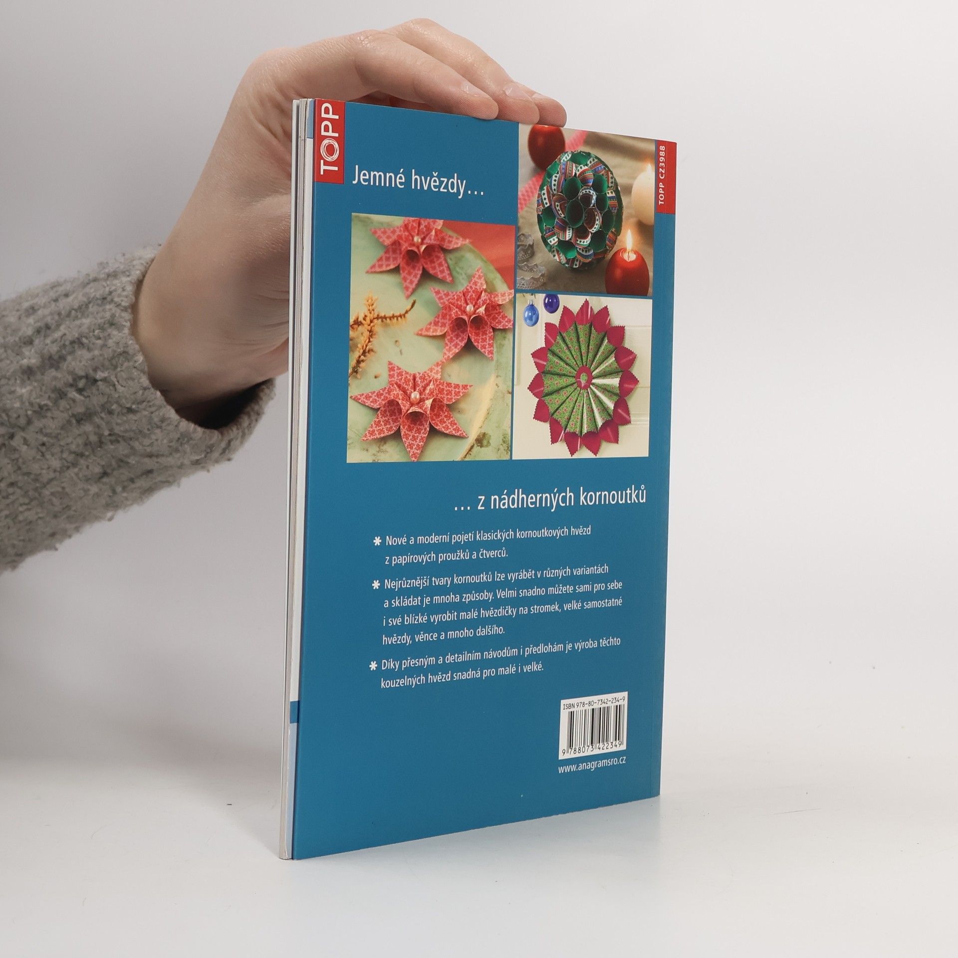 Podle knihy Půvabné hvězdy z papíru se naučíte klasické hvězdy z kornoutků, papírových proužků a čtverců či dortových krajek. Svěží tvary, elegantní papíry a milé akcenty – díky tomu všemu představují hvězdy nádherné dekorace pro celý dům. Lze z nich vytvářet mnoho variant a spojovat je mnoha různými způsoby. Velmi snadno můžete takto sami pro sebe i své blízké vytvořit malé hvězdy na stromeček, velké samostatné hvězdy, věnce a mnoho dalšího. Díky podrobným návodům a mnoha fotografiím, které popisují výrobu krok za krokem a jsou v této návodné knize obsaženy, pro vás nebude jejich výroba vůbec náročná.