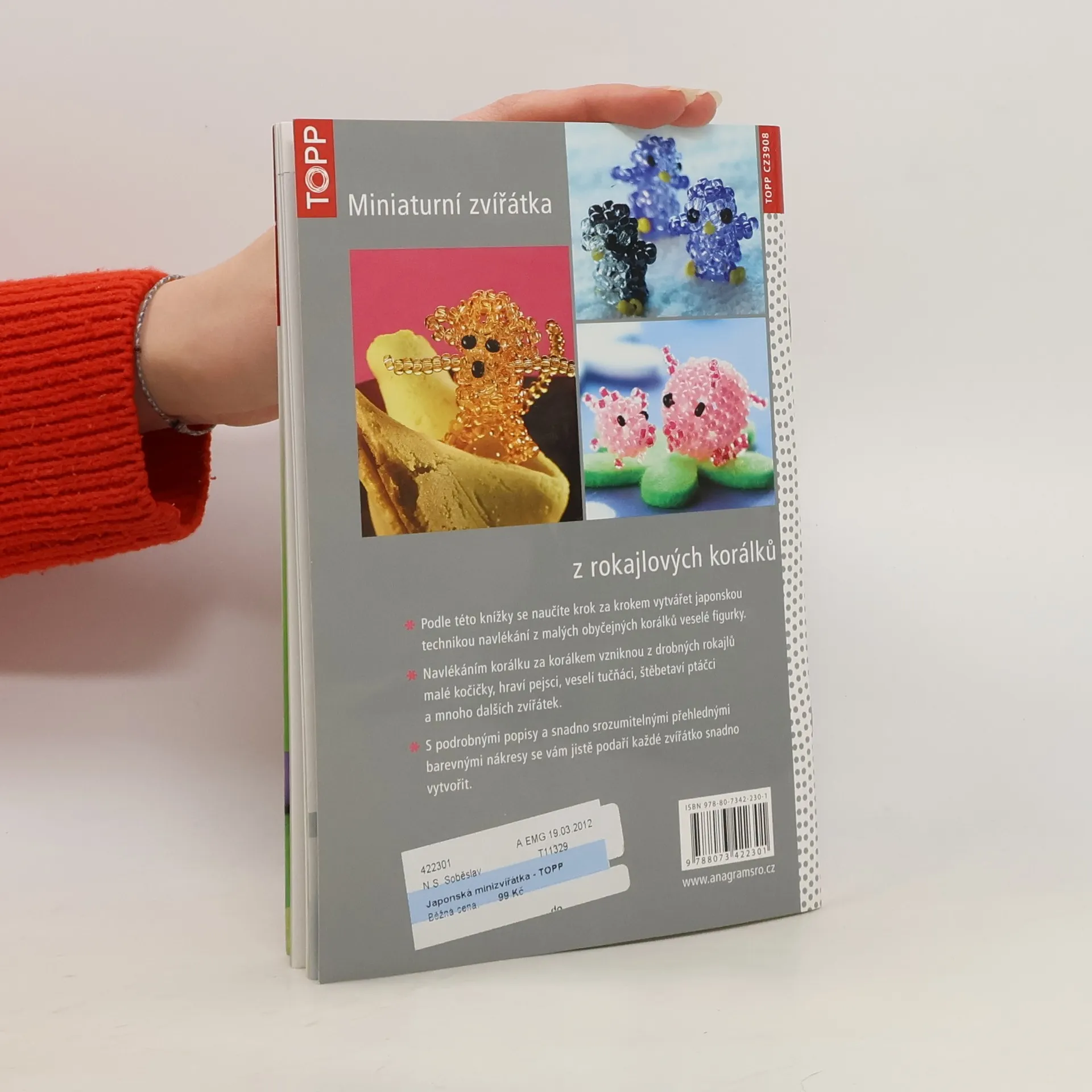 Podle této knížky se naučíte krok za krokem vytvářet japonskou technikou navlékání z malých rokajlových korálků veselé figurky. Navlékáním korálku za korálkem vzniknou malé kočičky, hraví pejsci, veselí tučňáci, štěbetaví ptáčci a mnoho dalších zvířátek. S podrobnými popisy a snadno srozumitelnými přehlednými barevnými nákresy se vám jistě podaří každé zvířátko snadno vytvořit.