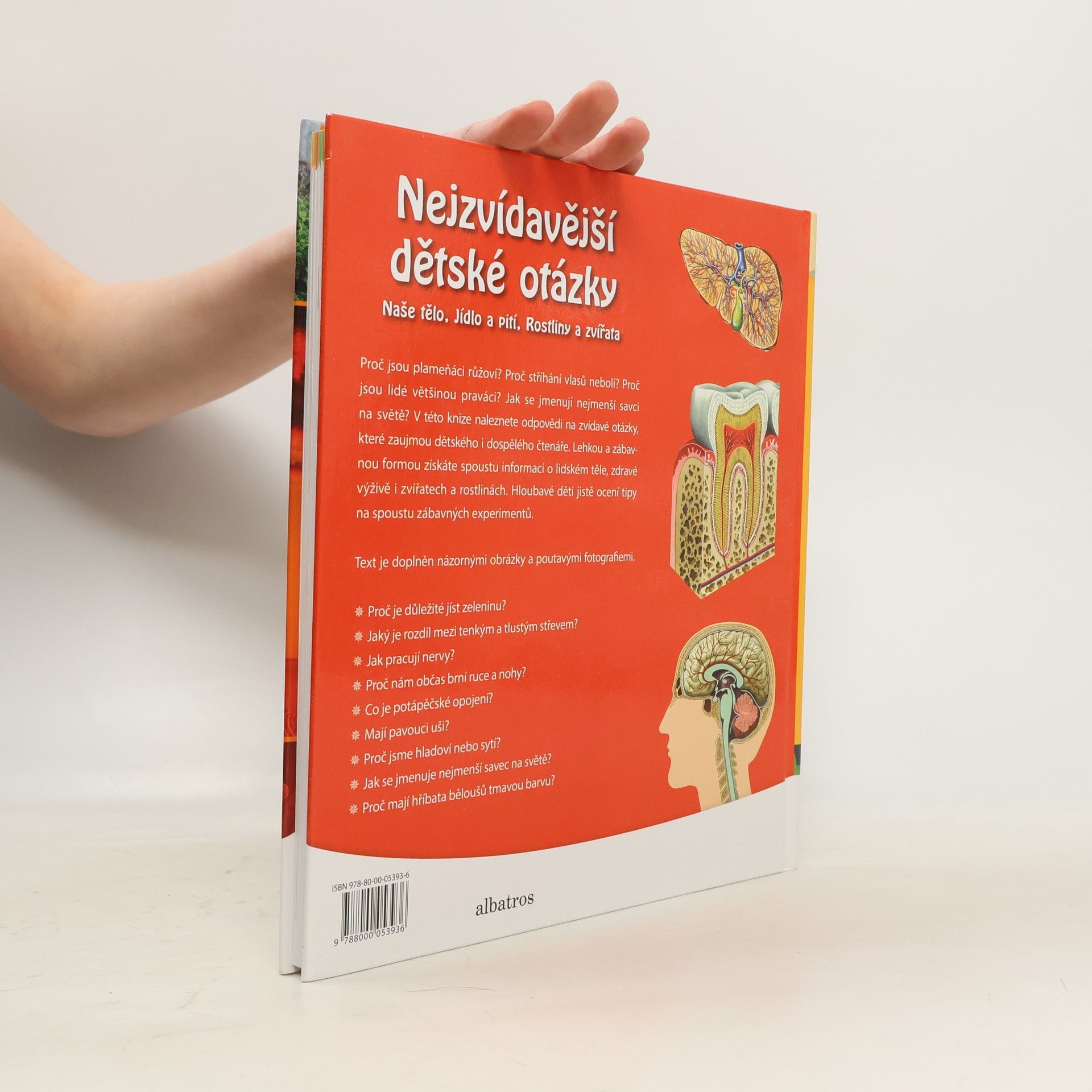 Proč jsou plameňáci růžoví? Proč stříhání vlasů nebolí? Proč jsou lidé většinou praváci? Jak se jmenují nejmenší savci na světě? V této knize naleznete odpovědi na zvídavé otázky, které zaujmou dětského i dospělého čtenáře. Lehkou a zábavnou formou získáte spoustu informací o lidském těle, zdravé výživě a zvířatech a rostlinách. Děti jistě ocení i tipy na spoustu zábavných experimentů