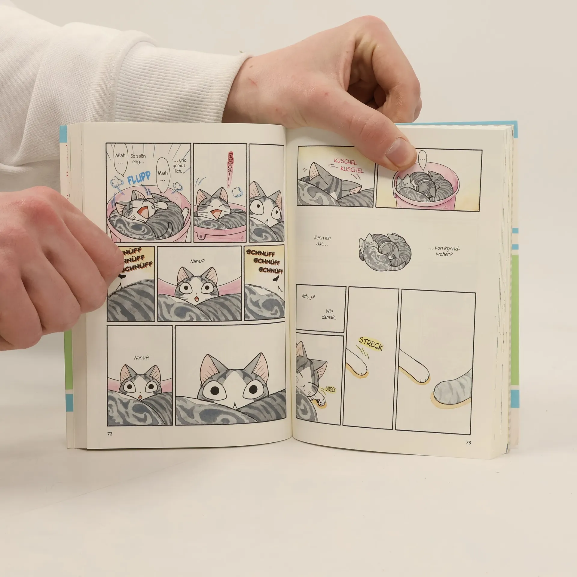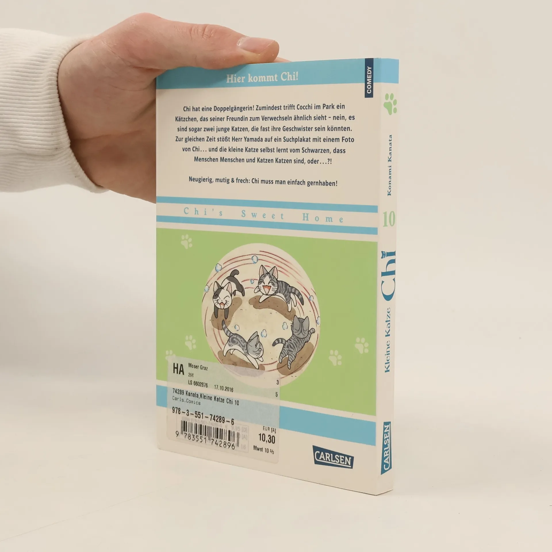 Bühne frei für die zuckersüße Chi, di e jede Menge Spaß & Unfug im Kopf hat! Ein kleines niedliches Kätzchen hat sich verlaufen. Viel Zeit zum Traurigsein bleibt nicht, denn es wird von Familie Yamada aufgenommen, die es nach kürzester Zeit um die Pfote wickelt. Für Chi gilt es, die Welt zu entdecken . Und das tut sie − voller Energie und Leidenschaft − gemeinsam mit dem dreijährigen Yohei. Chi hat eine Doppelgängerin! Zumindest trifft Cocchi im Park ein Kätzchen, das seiner Freundin zum Verwechseln ähnlich sieht – nein, es sind sogar zwei junge Katzen, die fast ihre Geschwister sein könnten. Zur gleichen Zeit stößt Herr Yamada auf ein Suchplakat mit einem Foto von Chi… und die kleine Katze selbst lernt vom Schwarzen, dass Menschen Menschen und Katzen Katzen sind, oder…?! Chi erobert die Herzen im Sturm – neugierig, mutig, frech und süß. Diese Katze muss man einfach gernhaben. Nicht nur für Katzenliebhaber*innen ein Genuss! Weitere Informationen: Für Manga-Neulinge jeden Alters Komplett in Farbe und westlicher Leserichtung Abgeschlossen in 12 Bänden Auch bekannt aus dem Anime “Süße Katze Chi” auf Amazon Prime Noch nicht genug von Katze Chi? Lies weiter in „Süße Katze Chi: Chi’s Sweet Adventures“!