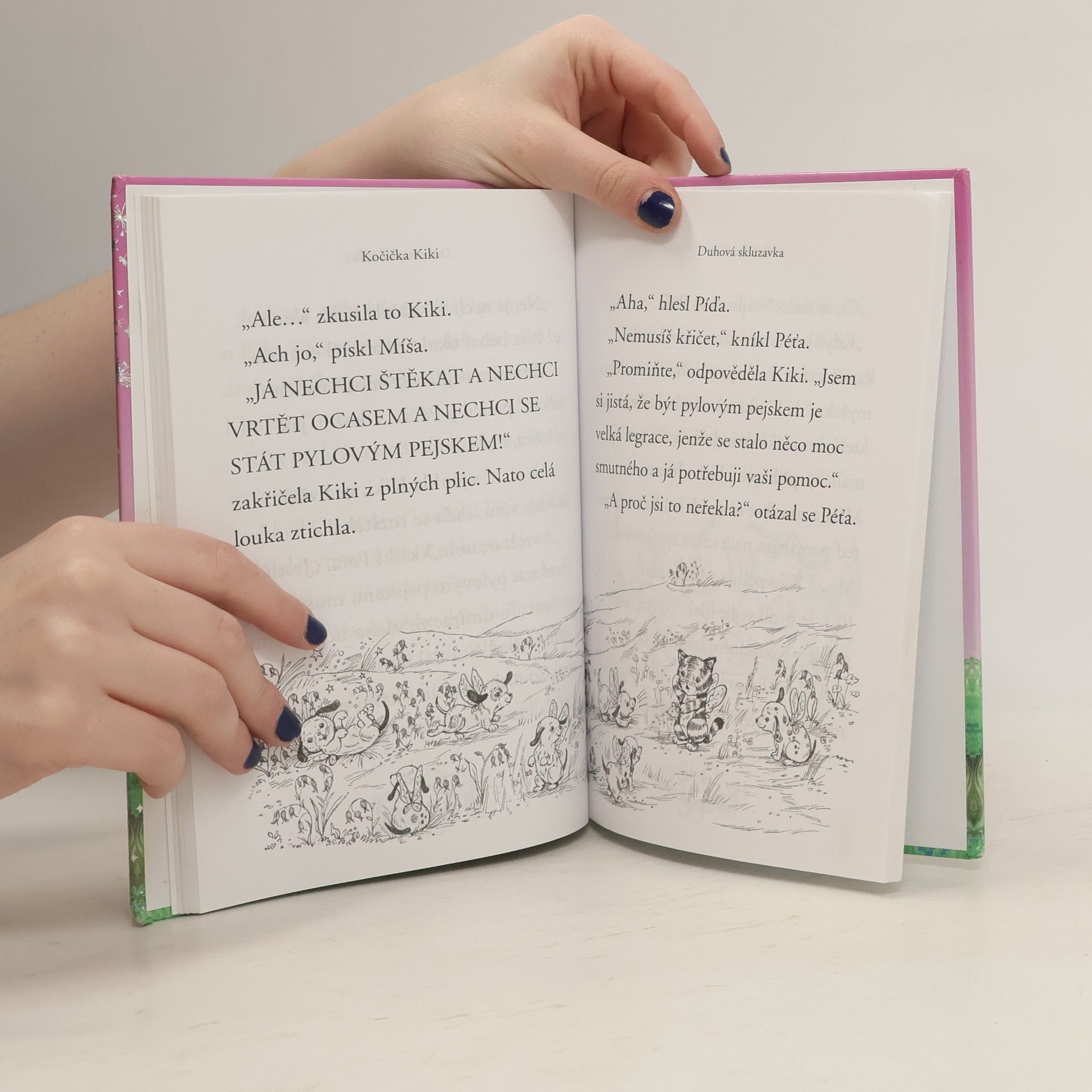 Vítejte v čarovném lese, o který se starají roztomilá zvířátka a  vzduchem voní kouzla. Kočičí víla Kiki má krásný úkol. Každý den poletuje po lese a zdobí pavučiny blyštivými kapičkami rosy. Jednou potká uplakaného myšáčka, který se ztratil. A  protože jsme v  Kouzelném lese, kde si zvířátka pomáhají, otře mu slzičky a dají se do hledání. Podaří se Kiki dovést myšáčka domů? Napínavá cesta začíná… Laskavé příběhy pro nejmenší čtenáře o  tom, že pomáhat je krásné.