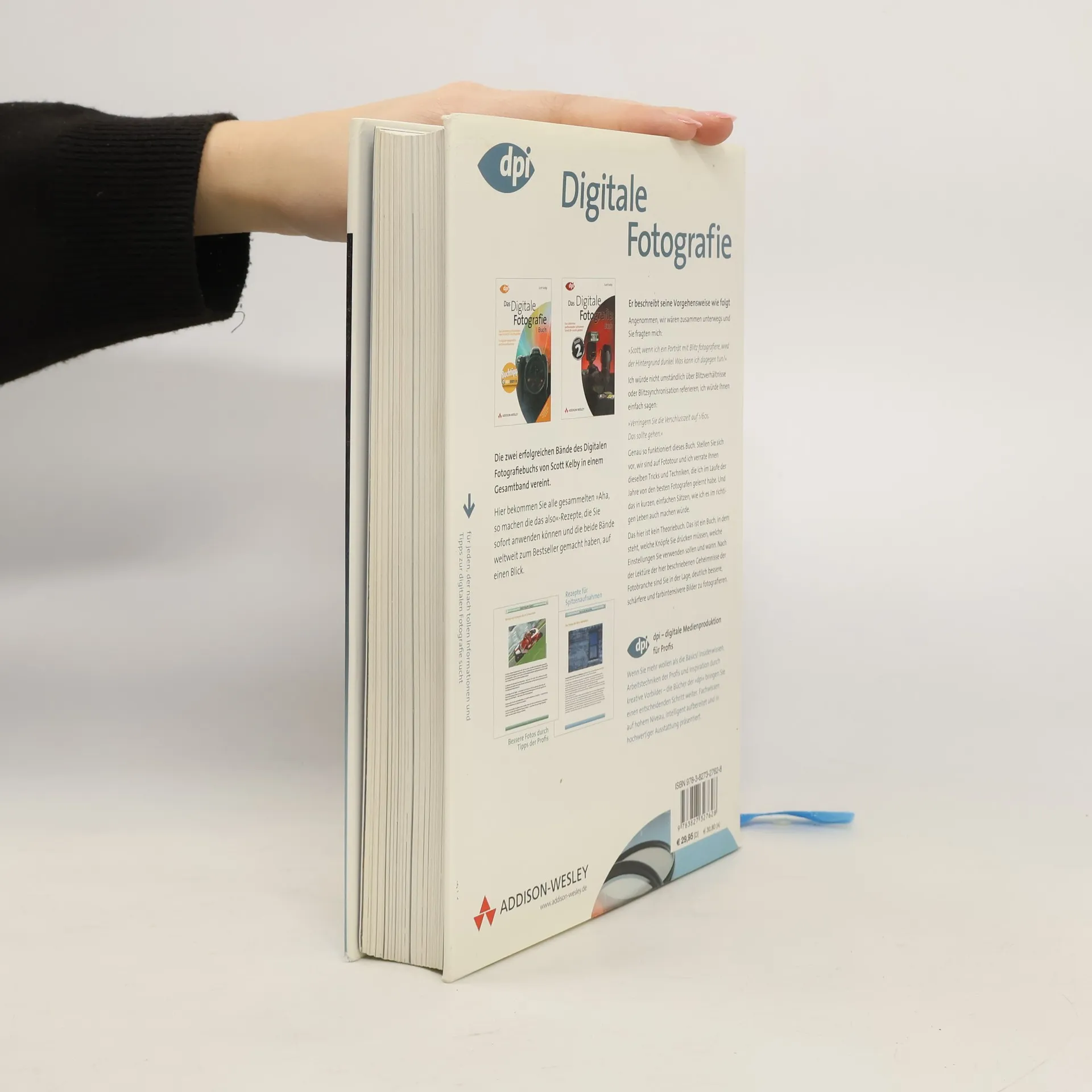 Die zwei erfolgreichen Bände des Digitalen Fotografiebuchs von Scott Kelby in einem Gesamtband vereint. Ob Sie Ihre Digitalkamera bereits seit Jahren benutzen oder sich gerade erst eine zugelegt haben, Scott Kelby zeigt Ihnen, was Sie wissen müssen, um wie ein Profi zu arbeiten. Erfahren Sie mehr über nützliche Ausrüstung (Batterien, Speicherkarten, Objektive, Stative etc.) und die Grundlagen der digitalen Fotografie, wie Belichtung, Verschlusszeit, Blende, Schärfentiefe (und warum diese so wichtig ist) und Auflösung. Scott Kelby vermittelt in seinen Büchern leicht verständlich wie dramatischere, schärfere, farbenfrohere und professionellere Fotos entstehen. Und zwar in dem Moment, wo man auf den Auslöser drückt. So vermeiden Sie Fehler, die später bei der Bildbearbeitung viel Zeit kosten würden. Pro Seite wird immer genau ein Trick, ein Konzept vorgestellt. Jede Seite zeigt eine weitere Profi-Einstellung, ein weiteres Profi-Werkzeug, einen weiteren Profi-Trick, wie aus Schnappschüssen Galeriefotos werden. Dabei behandelt er Themen wie Studioaufnahmen, Porträts, Landschaften, Reisefotos, Sportbilder, Hochzeiten u. v. m.