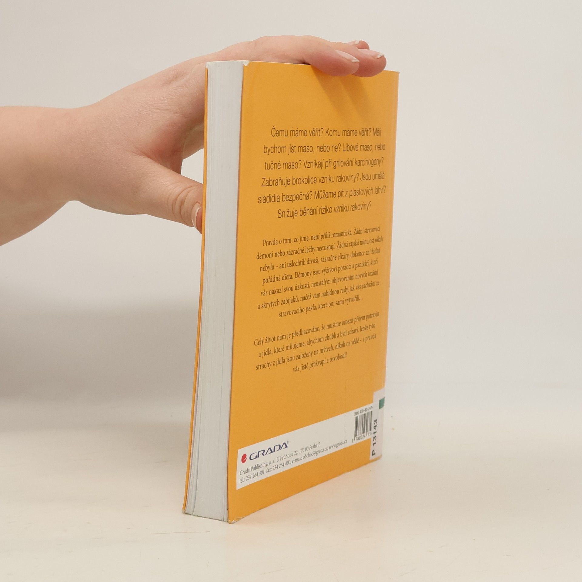 Čemu máme věřit? Komu máme věřit? Měli bychom jíst maso, nebo ne? Libové maso, nebo tučné maso? Vznikají při grilování karcinogeny? Zabraňuje brokolice vzniku rakoviny? Jsou umělá sladidla bezpečná? Můžeme pít z plastových lahví? Snižuje běhání riziko vzniku rakoviny? Pravda o tom, co jíme, není příliš romantická. Žádní stravovací démoni nebo zázračné léčby neexistují. Žádná rajská minulost nikdy nebyla – ani ušlechtilí divoši, zázračné elixíry, dokonce ani žádná pořádná dieta. Démony jsou výživoví poradci a panikáři, kteří vás nakazí svou úzkostí, neustálým objevováním nových toxinů a skrytých zabijáků, načež vám nabídnou rady, jak vás zachrání ze stravovacího pekla, které oni sami vytvořili… Celý život nám je předhazováno, že musíme omezit příjem potravin a jídla, které milujeme, abychom zhubli a byli zdraví, Jenže tyto strachy z jídla jsou založeny na mýtech, nikoli na vědě – a pravda vás jistě překvapí a osvobodí!