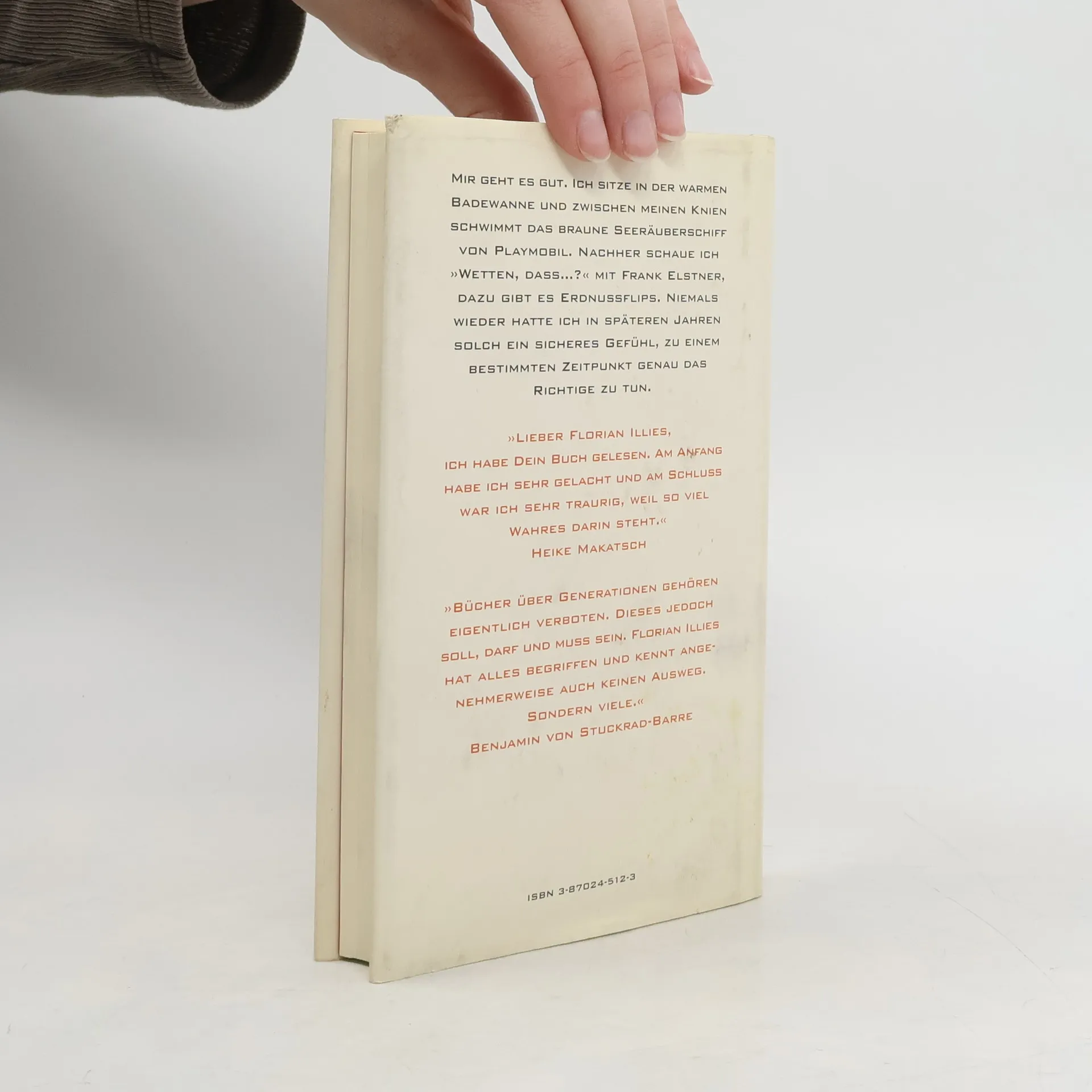 Mir geht es gut. Ich sitze in der warmen Badewanne, und zwischen meinen Knien schwimmt das braune Seeräuberschiff von Playmobil. Nachher schaue ich »Wetten, dass...?« mit Frank Elstner, dazu gibt es Erdnussflips. Niemals wieder hatte ich in späteren Jahren solch ein sicheres Gefühl, zu einem bestimmten Zeitpunkt genau das Richtige zu tun.
