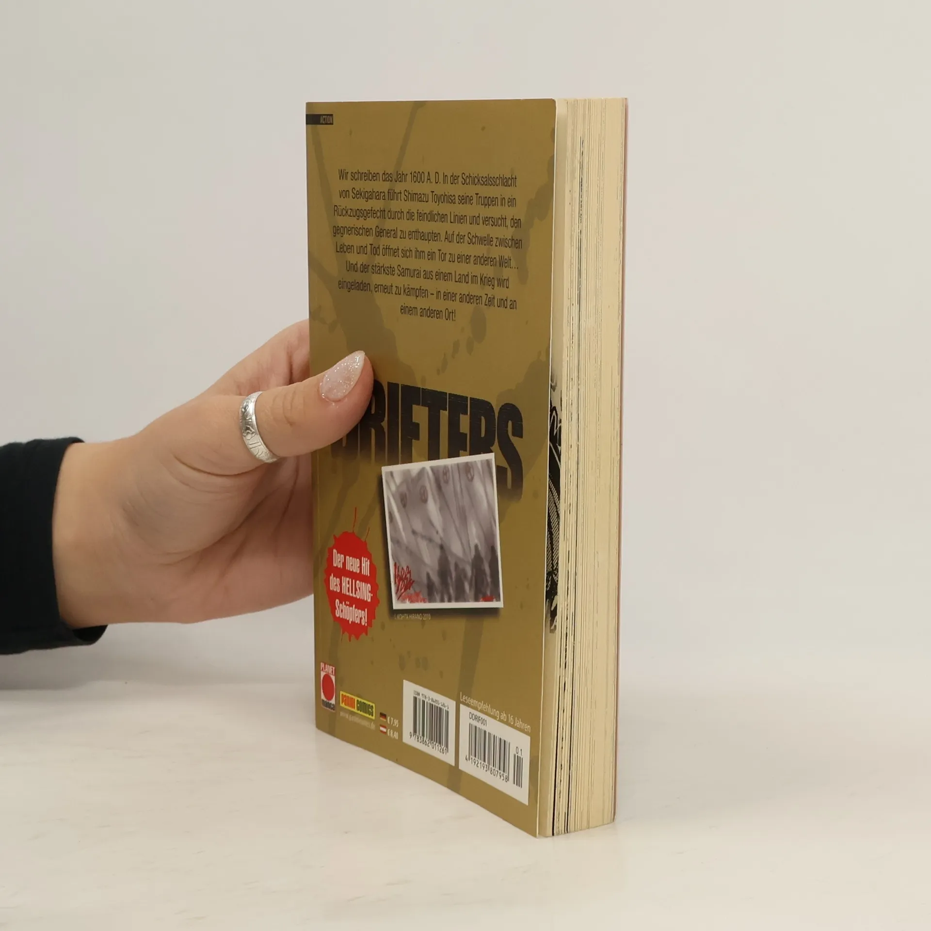 In einen Sog der Zeit gerissen treffen historische Legenden der Kriegskunst aufeinander … In einem historischen Crossover trifft die Vereinigung der Drifters auf die sogenannten Ends in erbitterten Kämpfen, nachdem plötzlich auftauchende Zeitenstrudel einst vergangene Kämpfer an einem Ort zum selben Zeitpunkt befördern … Dort werden sich die Legenden gegenüber stehen … Das erwartet dich in Band 1: Der Samurai Shimazu Toyohisa wird aus der (für die japanische Reichseinigung sehr bedeutsamen) Schlacht von Sekigahara herauskatapultiert und findet sich in der Jetztzeit und vor dem Schreibtisch eines rätselhaften Beamten wieder. Doch er ist nicht allein in der neuen Zeit: Berühmte Persönlichkeiten (nicht nur) der japanischen Geschichte heißen hier „Drifters“ und sollen gegen seltsame Wesen kämpfen, die die Welt in den Abgrund stürzen wollen. Mit dabei sind u. a. auch Oda Nobunaga, Jeanne D'Arc, Hannibal und Scipio, und die Magier der Octsystem-Organisation versuchen, deren jeweilige spezielle Fähigkeiten zu nutzen… Für Fans von Shonen Manga, Fantasy und historischen Crossovers!