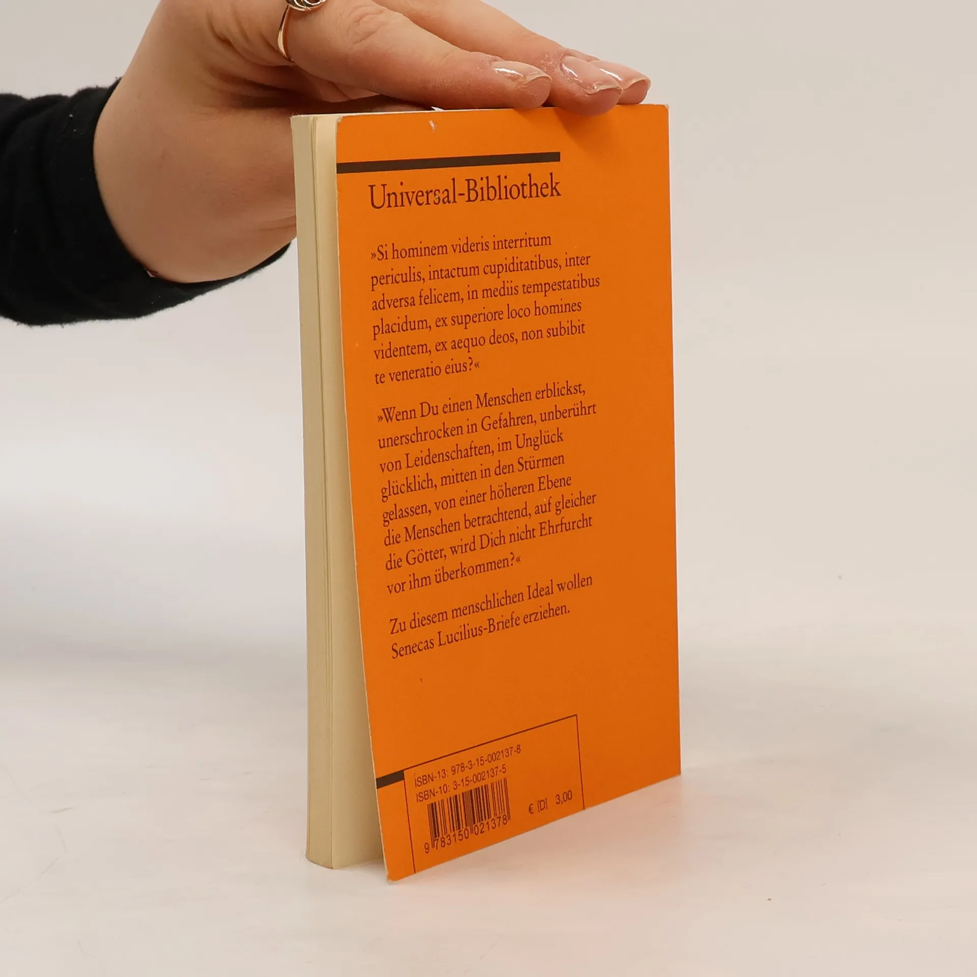 Müssen denn alle Seeufer mit Luxusvillen zugebaut werden? Muss man Delikatessen vom anderen Ende der Welt auf dem Tisch haben? Geradezu aktuell wirken Senecas Beispiele, mit denen er in den Briefen an seinen Freund Lucilius die Regeln für ein rechtes Leben gemäß der Stoa vermittelt: Wenn wir der Natur folgen, brauchen wir weniger und leben zufriedener und gesünder. Auch wer etwas über die römische Gesellschaft erfahren möchte, kommt bei der Lektüre der Briefe auf seine Kosten. Denn wie kaum ein anderer wusste Seneca die Marotten seiner Zeitgenossen aufs Korn zu nehmen und ein lebendiges Bild vom Alltagsleben zu zeichnen.