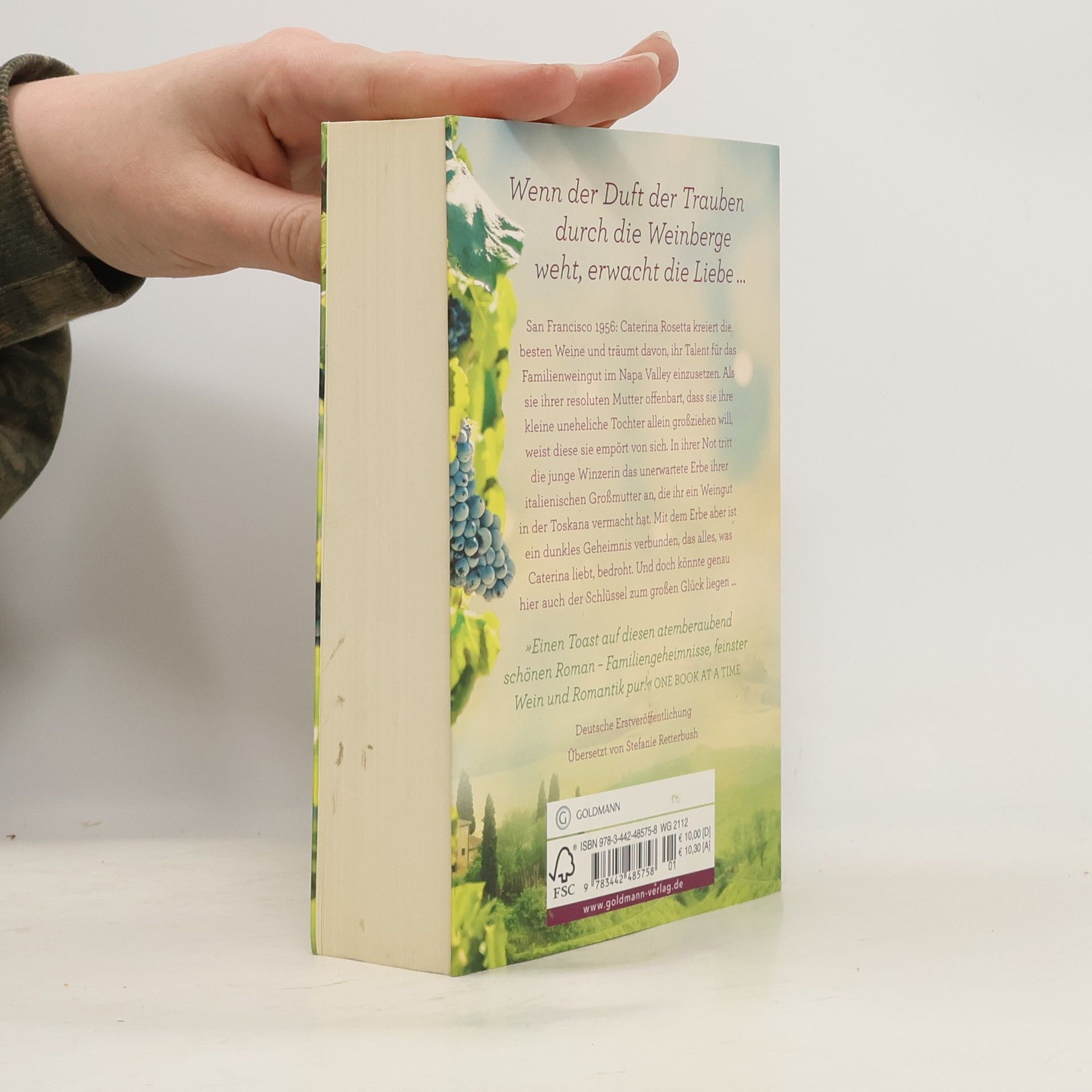 Kalifornien 1956: In einer Zeit strenger gesellschaftlicher Regeln kämpft die junge Winzerin Caterina für ihr Glück. San Francisco 1956: Die junge Winzerin Caterina kreiert die besten Weine und träumt davon, ihr Talent für das Familienweingut im Napa Valley einzusetzen. Dafür muss sie aber ihrer resoluten Mutter Ava endlich die Wahrheit offenbaren: Denn Caterina hat eine kleine uneheliche Tochter und ist fest entschlossen, sie trotz der gesellschaftlichen Ablehnung allein großzuziehen. Doch nach ihrem Geständnis weist Ava sie von sich. In ihrer Not tritt Caterina das unerwartete Erbe ihrer italienischen Großmutter an, die ihr ein Weingut in der entfernten Toskana vermacht hat. Doch mit dem Erbe ist ein dunkles Geheimnis verbunden, das alles, was Caterina liebt, bedroht – aber vielleicht auch der Schlüssel zum großen Glück ist ...