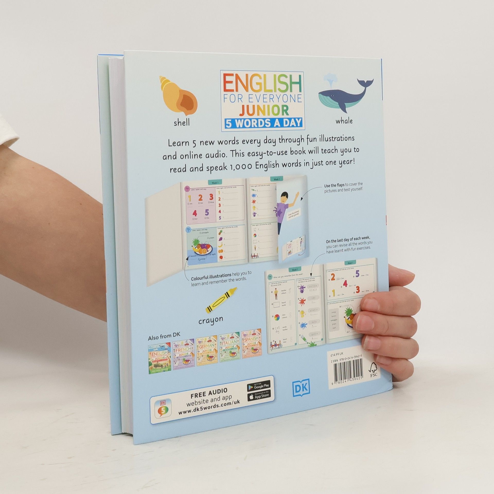 The book presents your child with 5 new words to learn and practise each day for four days, then tests these words through a variety of engaging exercises on day five. Over the course of one year, your child will build up a vocabulary of more than 1,000 commonly used English words. All the vocabulary is sorted into themes that reflect children's everyday lives (such as toys, clothes, and food), and each set of words is accompanied by a beautiful illustration that helps your child to fix those words in their memory. The daily "test yourself" practice utilizes cleverly designed flaps which hide the words your child has just learned