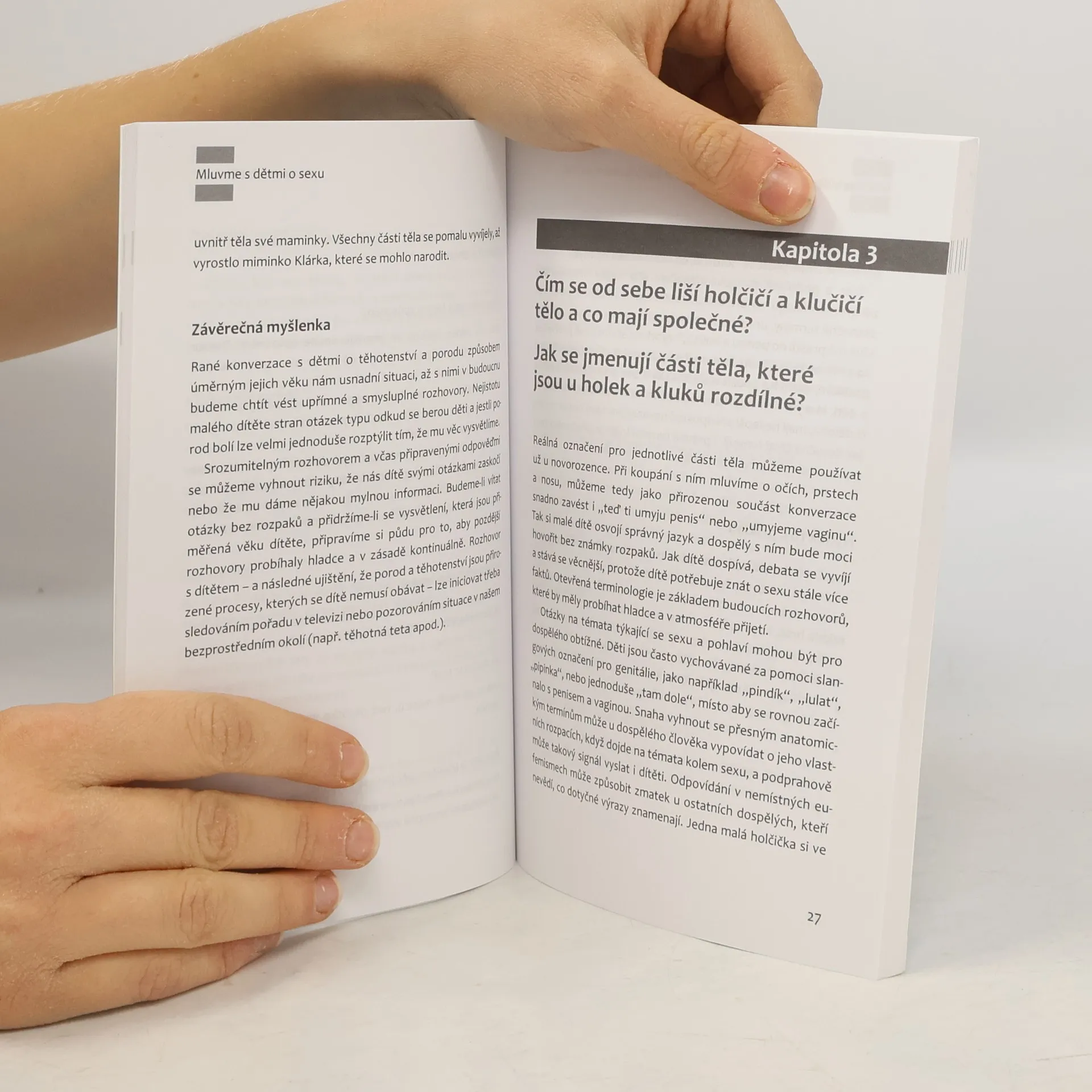 O sexu není nikdy snadné mluvit otevřeně. Dospělí často jen obtížně hledají slova zvlášť tehdy, když se jich na toto téma ptají děti. Předkládaná kniha zkoumá myšlenky a pocity, které děti v souvislosti s tímto tématem vyjadřují, a nabízí rodičům a vychovatelům podněty, jak mohou na nesnadné otázky odpovídat klidně, láskyplně a s citem. Autorka se věnuje nejčastějším otázkám, které děti na téma sexu kladou. Jak jsem přišel na svět? Jaké jsou rozdíly mezi chlapci a dívkami? Co je to sex? Co je to těhotenství a puberta? Emoce a reakce dětí vnímá autorka jako přirozené a věnuje jim svou pozornost, uvádí zvlášť odpovědi pro dospělé a pro děti. Tento rádce je praktickou pomůckou pro rodiče a vychovatele, která jim pomůže mluvit s dětmi o sexu způsobem odpovídajícím jejich věku a rozumovým schopnostem. Nabízí cenné podněty pro sexuální výchovu v rodině.