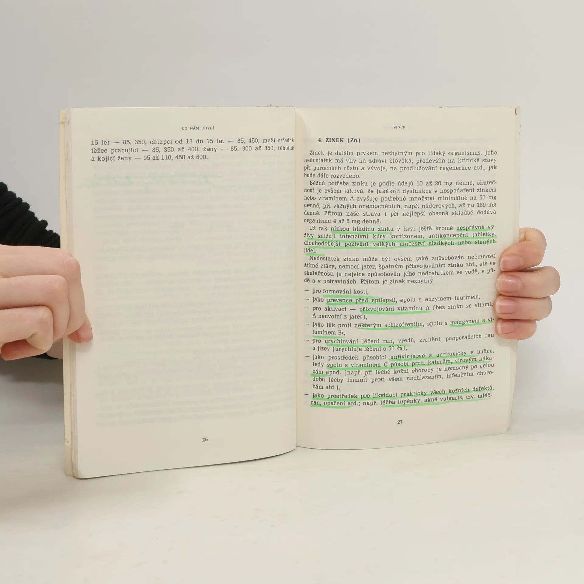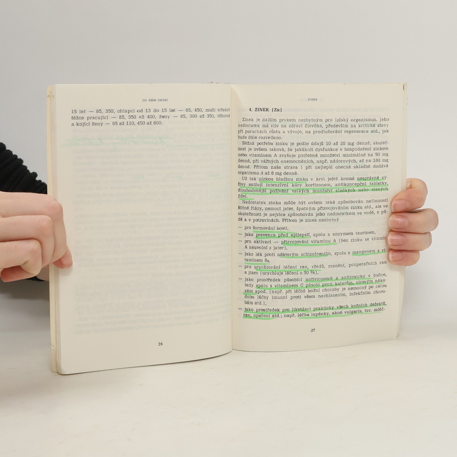 Kniha nám vysvětluje, které prvky a kovy nám chybí v těle při té které chorobě.