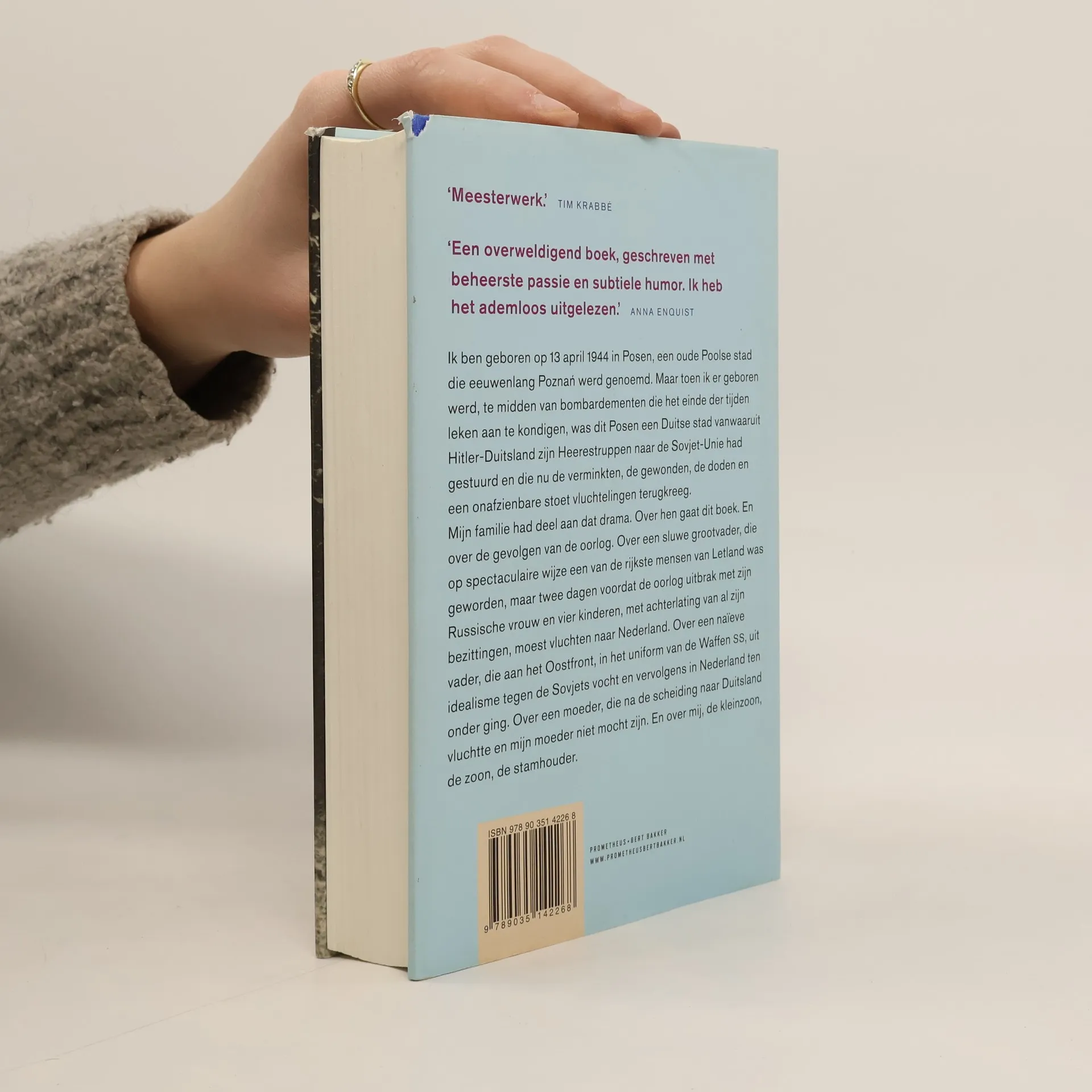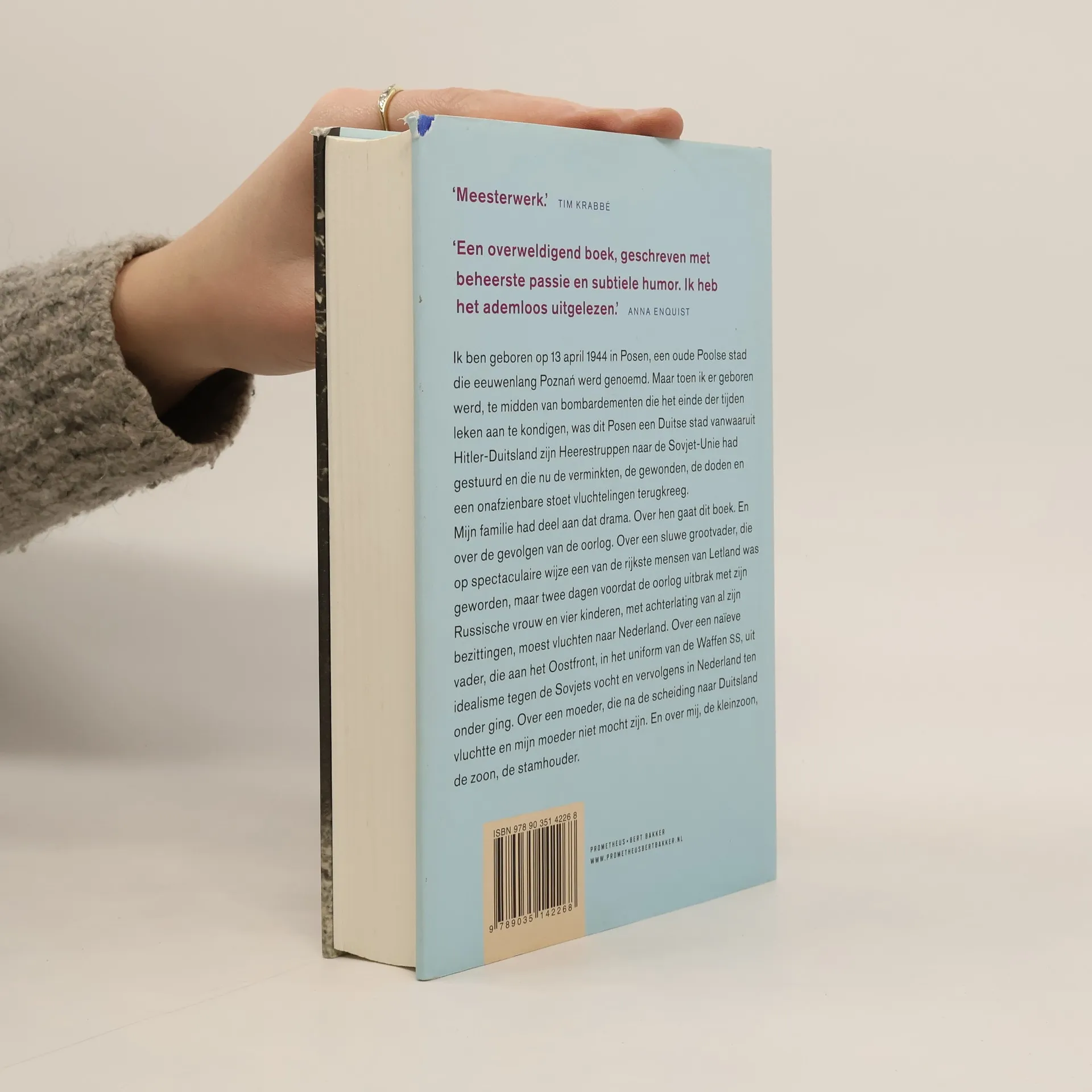 Ik ben geboren op 13 april 1944 in Posen, een oude Poolse stad die eeuwenlang Pozna werd genoemd. Maar toen ik er geboren werd, te midden van bombardementen die het einde der tijden leken aan te kondigen, was dit Posen een Duitse stad vanwaaruit Hitler-Duitsland zijn Heerestruppen naar de Sovjet-Unie had gestuurd en die nu de verminkten, de gewonden, de doden en een onafzienbare stoet vluchtelingen terugkreeg. Mijn familie had deel aan dat drama. Over hen gaat dit boek. En over de gevolgen van de oorlog. Over een sluwe grootvader, die op spectaculaire wijze een van de rijkste mensen van Letland was geworden, maar twee dagen voordat de oorlog uitbrak met zijn Russische vrouw en vier kinderen, met achterlating van al zijn bezittingen, moest vluchten naar Nederland. Over een naïeve vader, die aan het Oostfront, in het uniform van de Waffen ss, uit idealisme tegen de Sovjets vocht en vervolgens in Nederland ten onder ging. Over een moeder, die na de scheiding naar Duitsland vluchtte en mijn moeder niet mocht zijn. En over mij, de kleinzoon, de zoon, de stamhouder.