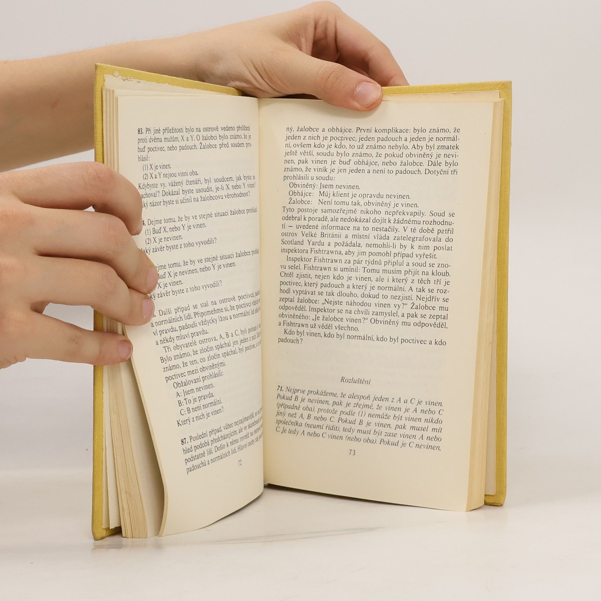 V novém, upraveném vydání vychází tato slavná kniha amerického matematika, v níž nás zve třeba na ostrovy poctivců a padouchů, do světa Alenky v říši divů a za zrcadlem a Shakespearova Benátského kupce, k inspektoru Fishtrawnovi ze Scotland Yardu, mezi vlkodlaky nebo za hrabětem Draculou. Autor nám představuje 271 hádanek, chytáků či logických paradoxů a pro kontrolu samozřejmě nabízí i jejich podrobná řešení. Hravou a vtipnou formou nás uvádí například do světa výrokové logiky a teorie množin včetně proslulého Gödelova principu. Úlohy jsou vhodné pro všechny milovníky záhad a logiky i pro ty, kdo se chtějí zdokonalit v řešení některých částí testů obecných studijních předpokladů.