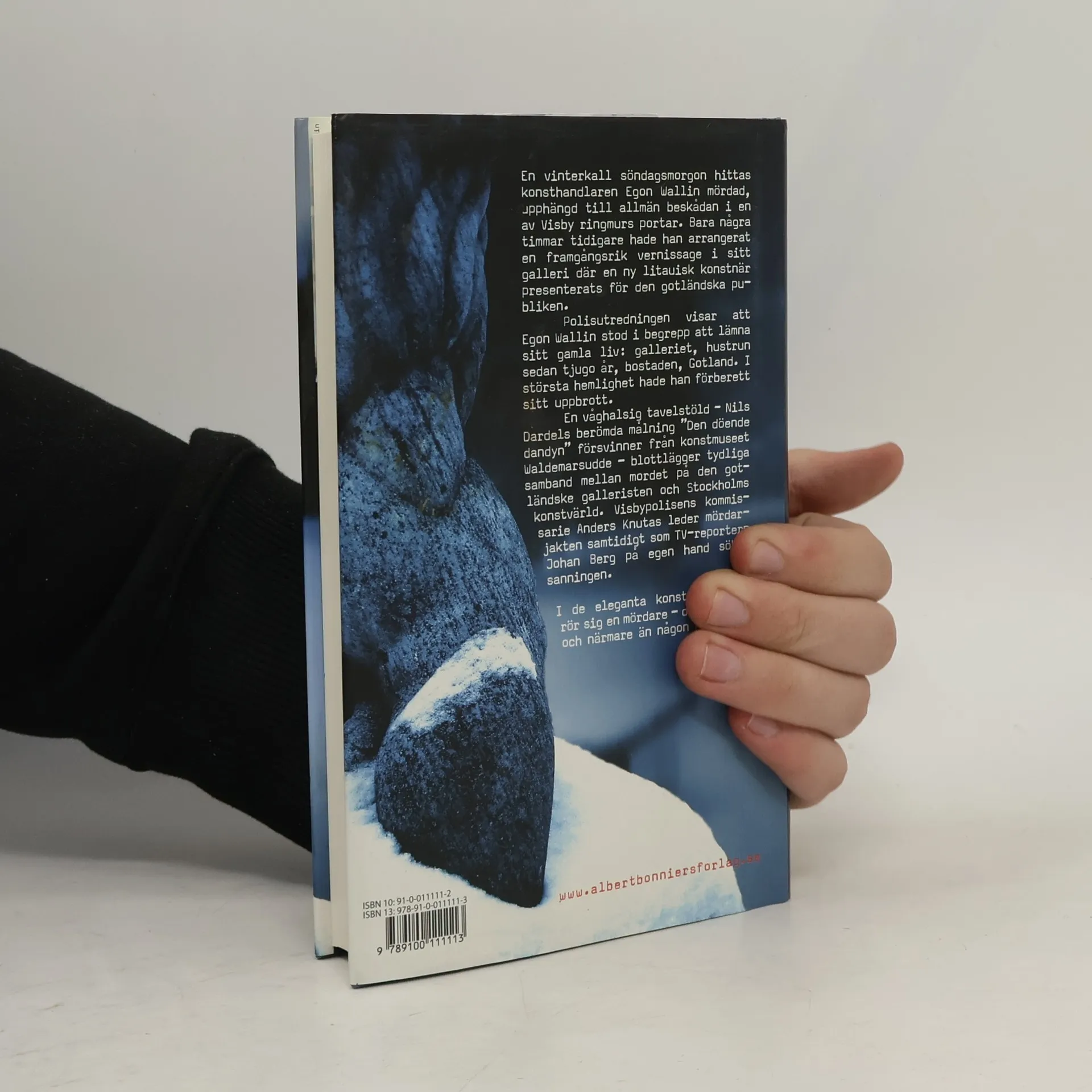 Krimi. En vinterkold søndagsmorgen findes kunsthandleren Egon Wallin myrdet og hængt op på en port i Visbys ringmur. Politiundersøgelsen viser at Wallin i al hemmelighed havde forberedt sig på at bryde op fra sit gamle liv: galleriet, hustruen, bopælen, Gotland. Der dukker tydelige forbindelser op mellem mordet og Stockhols kunstnerverden. Visbys kommisær Anders Knutas leder morderjagten, men tv-reporteren Johan Berg prøver på egen hånd at finde sandheden.