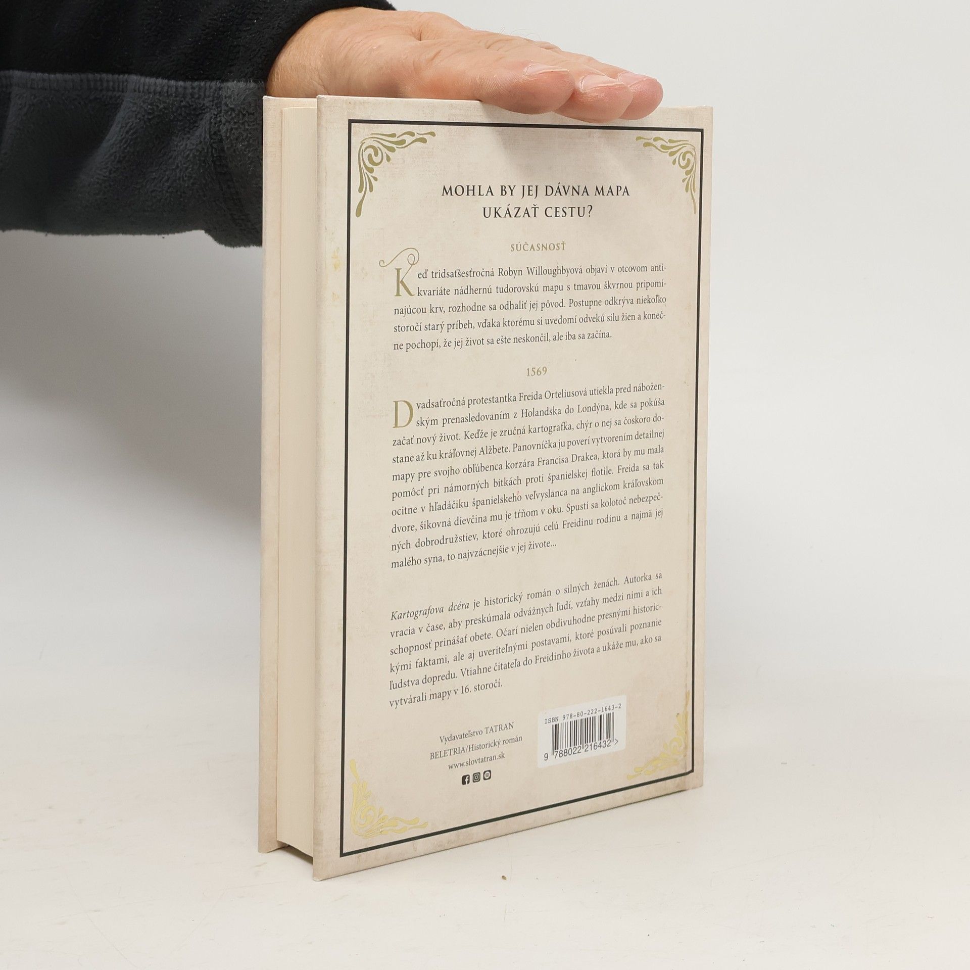 Nádherný historický príbeh podľa skutočných udalostí, ktorý nám ukáže nielen to, ako sa v 16. storočí zakresľovali mapy, ale ponúka aj inšpirujúci príbeh jednej odvážnej ženy. Robyn sa zrútil svet, keď jej milovaný manžel Nate pred siedmimi rokmi zmizol v morských vlnách. Odišla z rušného Londýna do pokojného rodného mestečka Hay-on-Wye, kde jej otec vlastní malý obchodík s knihami a mapami. Spolu s otcom v ňom objavia záhadnú, nevšedne detailnú mapu. Robyn sa rozhodne preskúmať jej pôvod a odhaliť jej tajomný príbeh. Netuší však, že mapa jej – tak, ako to mapy robievajú – ukáže správnu cestu. Protestantka Freida pochádza z významnej holandskej kartografickej rodiny, ktorá žila v 16. storočí. Ako dieťa zažila peklo, ktoré rozpútala nenávisť medzi katolíkmi a protestantmi. Aby sa zachránila, utiekla z Holandska do Londýna, kde sa pokúša žiť úplne nový život a využíva svoje zručnosti v gravírovaní máp. Chýr o nej sa čoskoro donesie až ku kráľovnej Alžbete, ktorá ju požiada, aby pre slávneho moreplavca Francisa Drakea vytvorila tú najdetailnejšiu mapu, akú kedy svet videl. Freida sa tak ocitá na kráľovskom dvore, kde si znepriatelí španielskeho vyslanca. Spustí sa tak kolotoč nebezpečných dobrodružstiev, ktoré ohrozujú celú Freidinu rodinu.