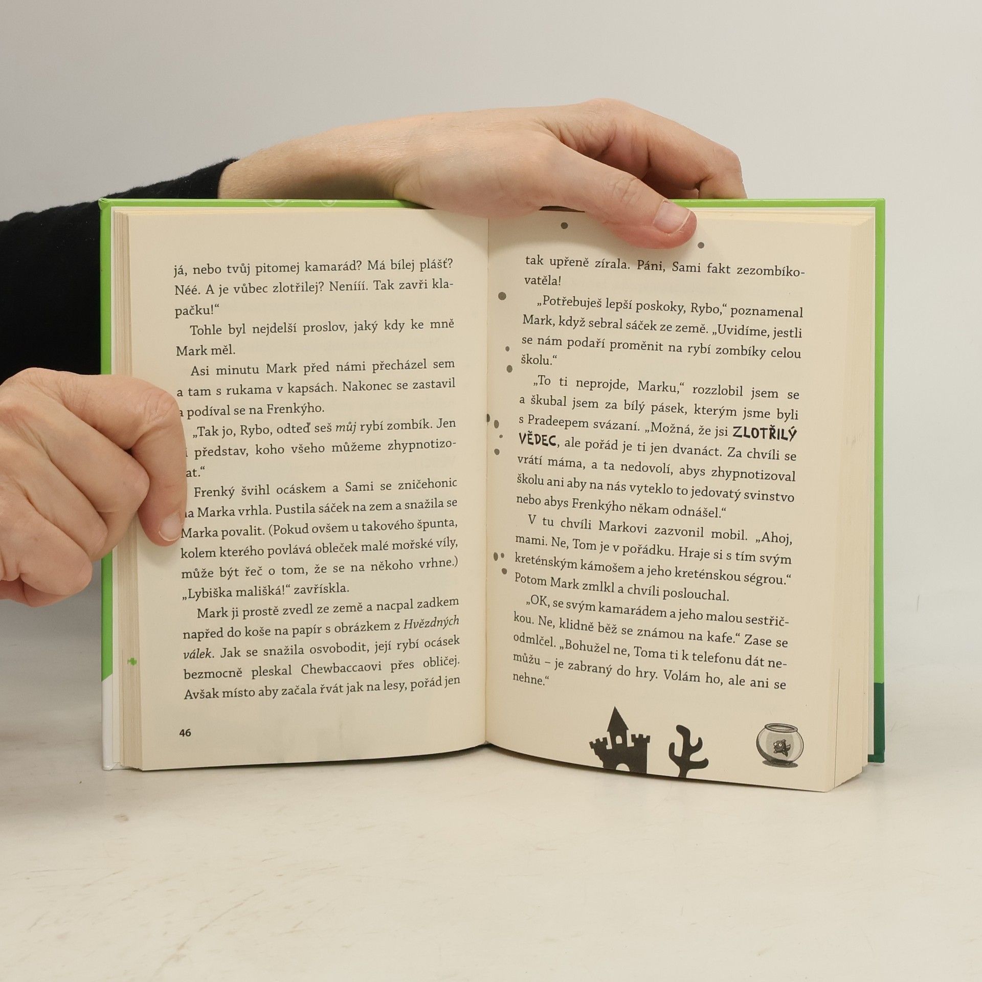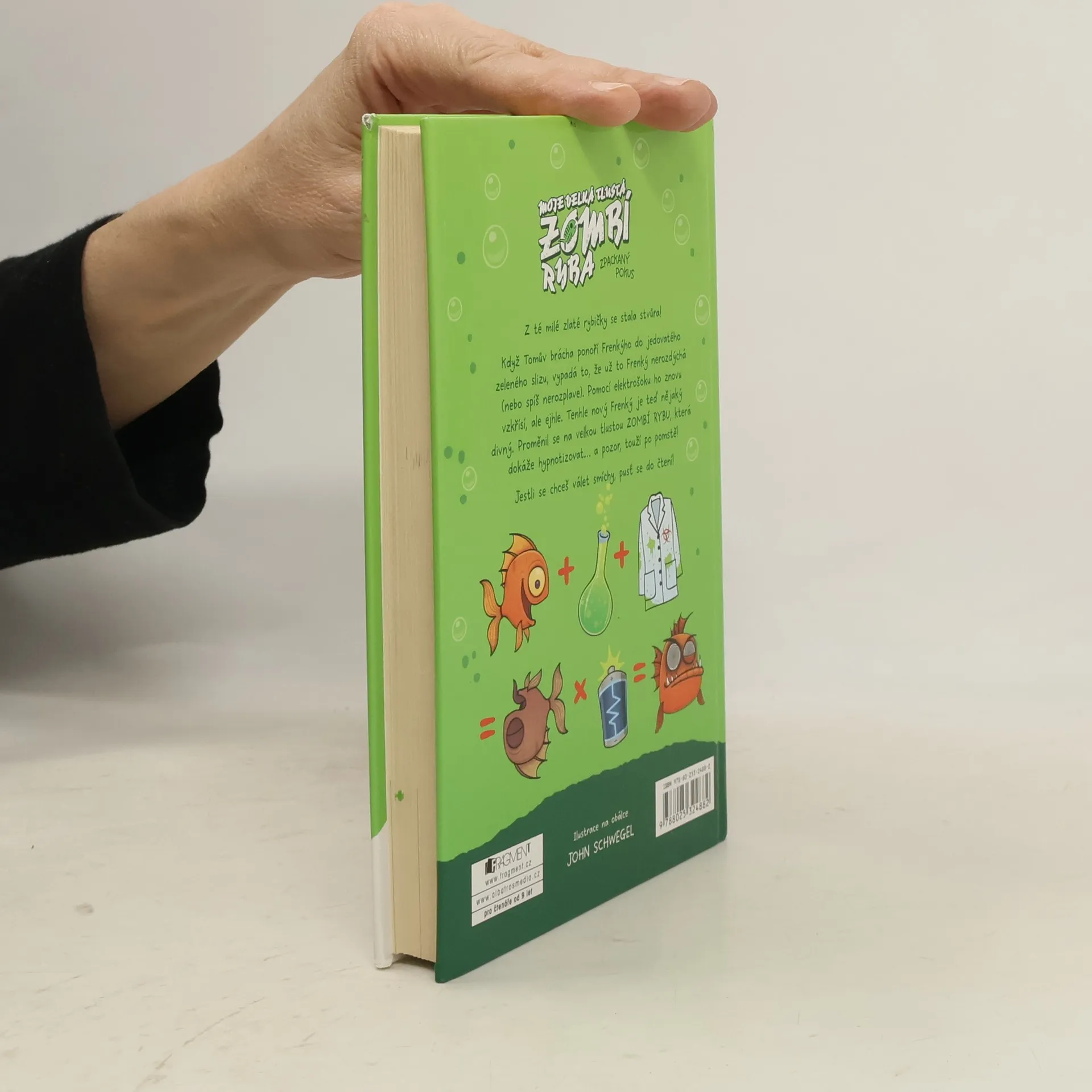 Z té milé zlaté rybičky se stala stvůra! Když Tomův brácha ponoří Frenkýho do jedovatého zeleného slizu, vypadá to, že už to Frenký nerozdýchá (nebo spíš nerozplave). Pomocí elektrošoku ho znovu vzkřísí, ale ejhle. Tenhle nový Frenký je teď nějaký divný. Proměnil se na velkou tlustou ZOMBÍ RYBU, která dokáže hypnotizovat… a pozor, touží po pomstě! Jestli se chceš válet smíchy, pusť se do čtení!