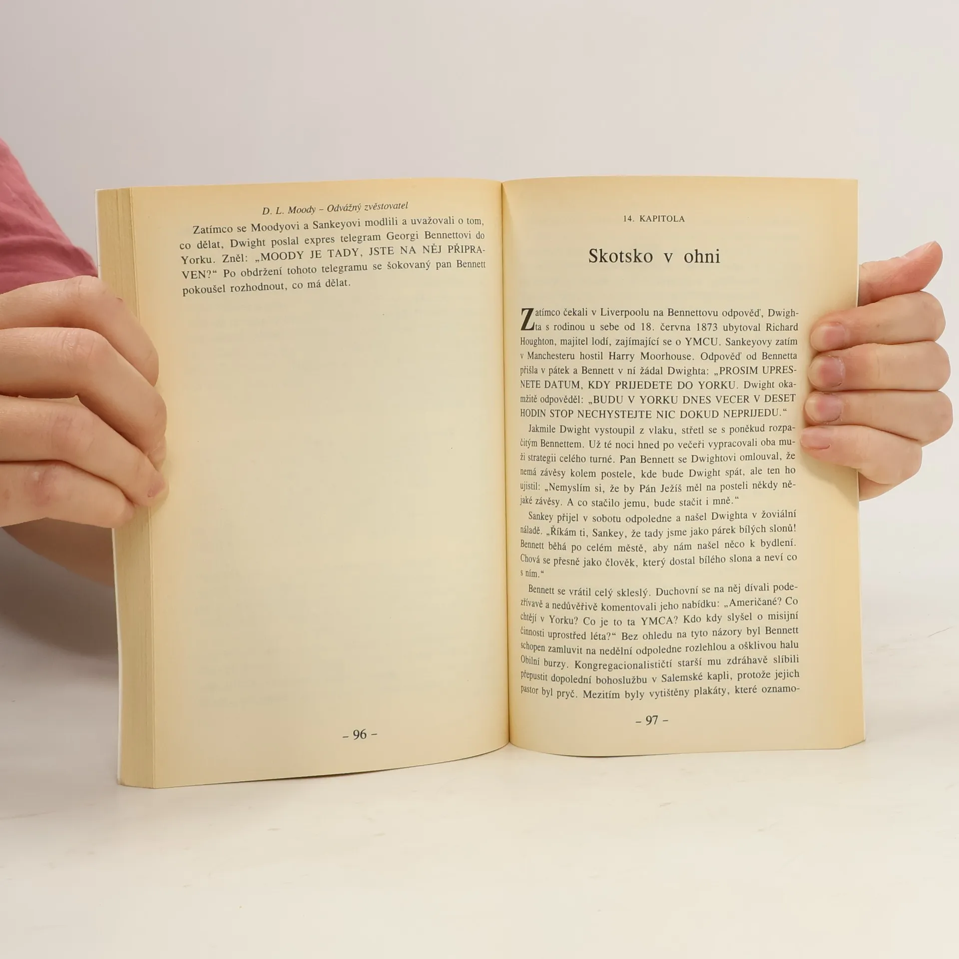 Životopis D.L. Moodyho, muže víry - jednoho z nejznámějších evangelistů. Začínal jako prodavač obuvi. Brzo ale začal pracovat s mládeží v rámci nedělní školy. Pak sloužil jako duchovní vojákům, kteří odcházeli na frontu. Tato otřesná zkušenost v něm vyvolala velkou touhu po zvěstování zprávy o zachraňující Boží milosti. Jeho pouť začala v Chicagu, pokračoval do Anglie, Skotska, Irska a vrátil se zpět do Ameriky. Velmi čtivá a poutavá kniha.