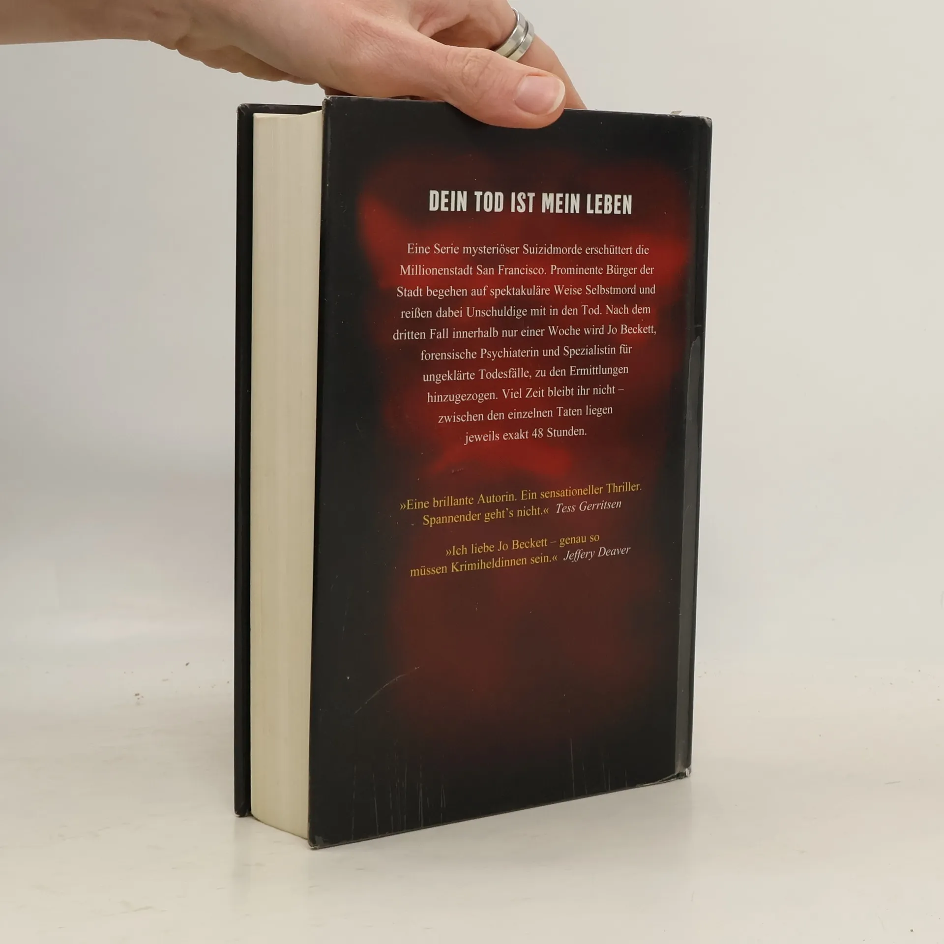 Eine Serie mysteriöser Suizidmorde erschüttert San Francisco, als prominente Bürger auf spektakuläre Weise Selbstmord begehen und dabei Unschuldige mit in den Tod reißen. Nach dem dritten Fall innerhalb einer Woche wird Jo Beckett, forensische Psychiaterin und Spezialistin für ungeklärte Todesfälle, zu den Ermittlungen hinzugezogen. Die Zeit drängt, denn zwischen den Taten liegen jeweils exakt 48 Stunden. Am Tatort trifft Jo auf ein erschreckendes Chaos: Trümmer, Schmutz und Gestank. Ein demoliertes Auto, das nach einer Verfolgungsjagd mit der Polizei von einer Brücke gefallen ist, zieht ihre Aufmerksamkeit auf sich. Vier Menschen sterben, darunter die bekannte Bundesanwältin Callie Harding. Der Fahrer des Polizeiwagens ist überzeugt, dass Harding den BMW absichtlich von der Brücke gelenkt hat, da keine Bremsspuren zu finden sind. Doch wenn es Selbstmord war, warum mussten dann drei weitere Menschen sterben? Gibt es eine Verbindung zu anderen mysteriösen Todesfällen in der Stadt? Jo Beckett wird mit den Ermittlungen betraut und entdeckt eine elitäre Vereinigung, der offenbar alle Opfer angehörten. Diese Spur bringt sie in größte Lebensgefahr. In der Stunde der Wahrheit ist man allein...