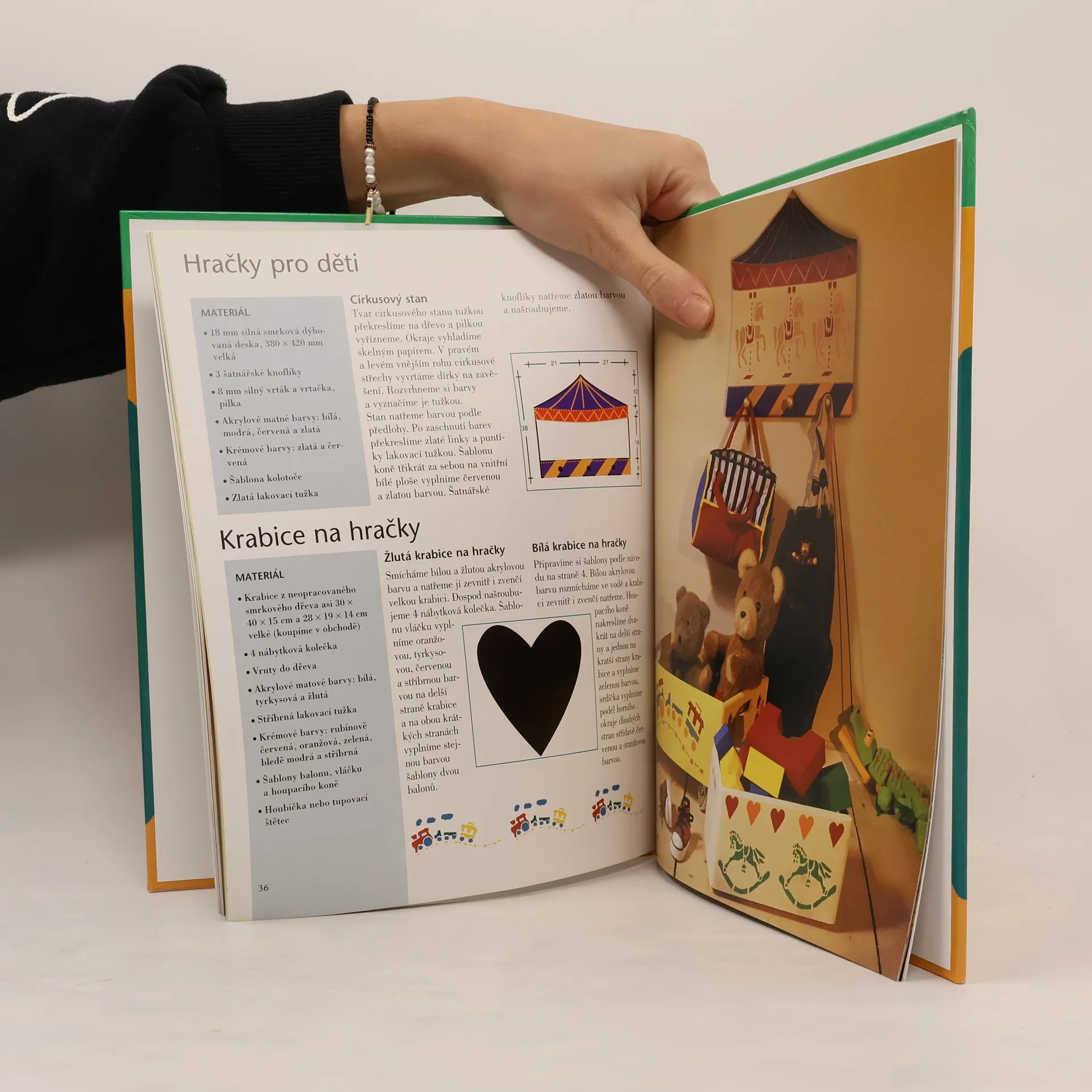 Velmi stručný text, doprovázený názornými obrázky a fotogafiemi hotových výrobků, seznamuje s potřebnými pomůckami i různými technikami. Jádro knihy tvoří desítky konkrétních pracovních postupů od zhotovení drobných dárků (balicí papíry, krabičky, květináče) až po vlastnoruční dekorování zdí i nábytku.