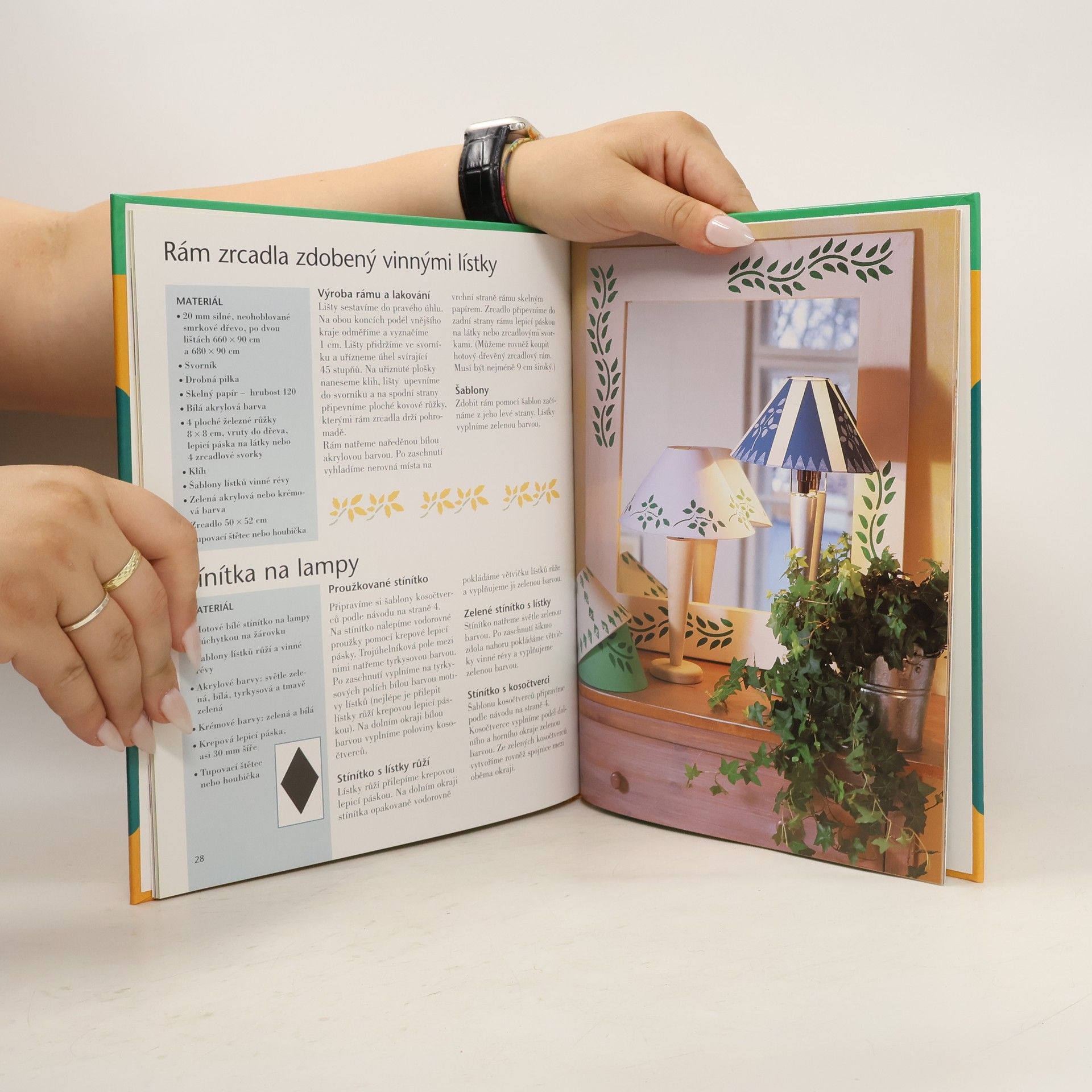 Velmi stručný text, doprovázený názornými obrázky a fotogafiemi hotových výrobků, seznamuje s potřebnými pomůckami i různými technikami. Jádro knihy tvoří desítky konkrétních pracovních postupů od zhotovení drobných dárků (balicí papíry, krabičky, květináče) až po vlastnoruční dekorování zdí i nábytku.