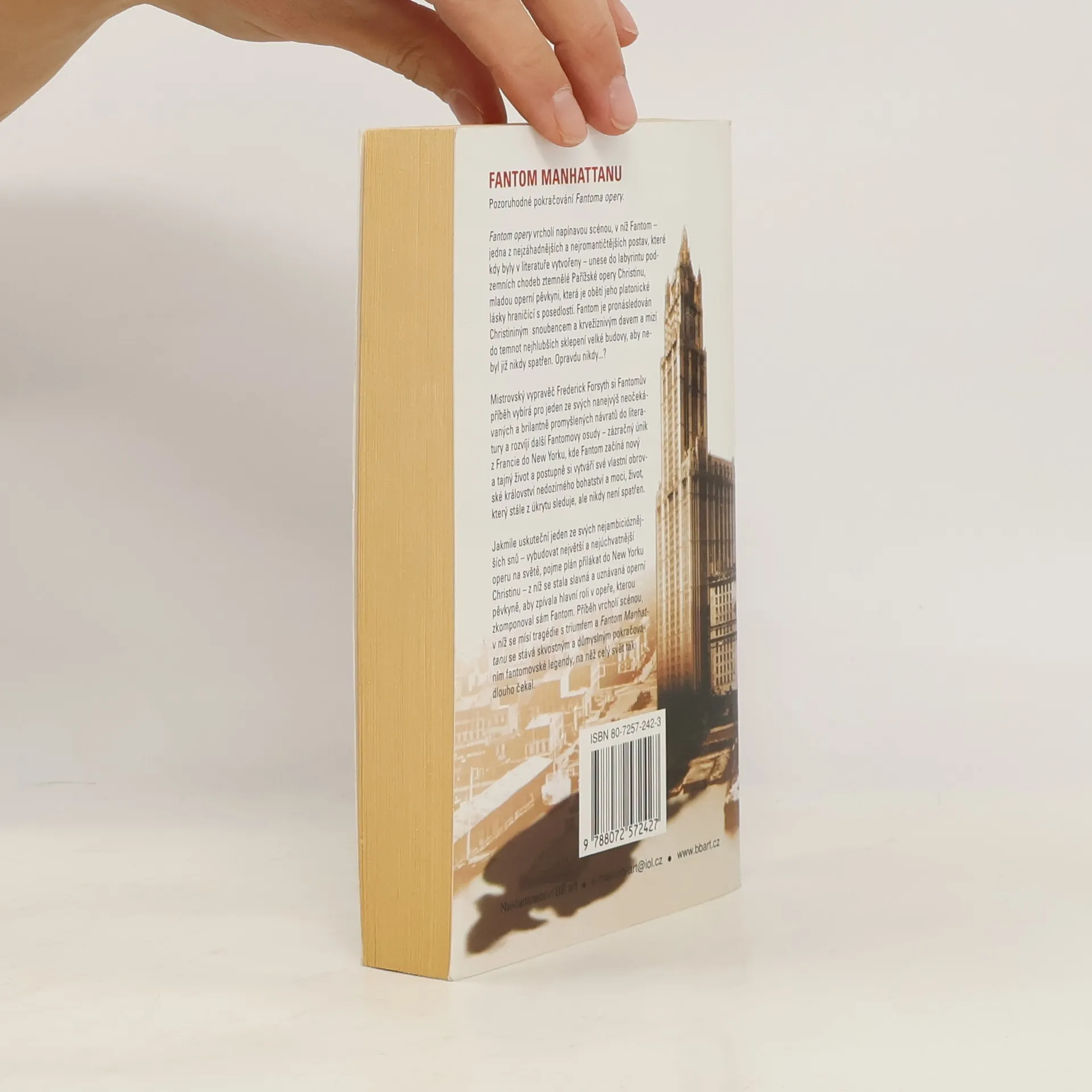 Fantom opery vrcholí napínavou scénou, v níž Fantom – jedna z nejzáhadnějších a nejromantičtějších postav, které kdy byly v literatuře vytvořeny – unese do labyrintu podzemních chodeb ztemnělé Pařížské opery Christinu, mladou operní pěvkyni, která je obětí jeho platonické lásky hraničící s posedlostí. Fantom je pronásledován Christininým snoubencem a krvežíznivým davem a mizí do temnot nejhlubších sklepení velké budovy, aby nebyl již nikdy spatřen. Opravdu nikdy...? Jakmile Fantom uskuteční jeden ze svých nejambicióznějších snů – vybudovat největší a nejúchvatnější operu na světe, pojme plán přilákat do New Yorku Christinu – z níž se stala slavná a uznávaná operní pěvkyně, aby zpívala hlavní roli v opeře, kterou zkomponoval sám Fantom. Příběh vrcholí scénou, v níž se mísí tragédie s triumfem a Fantom Manhattanu se stává skvostným a důmyslným pokračováním fantomovské legendy, na něž celý svět tak dlouho čekal.