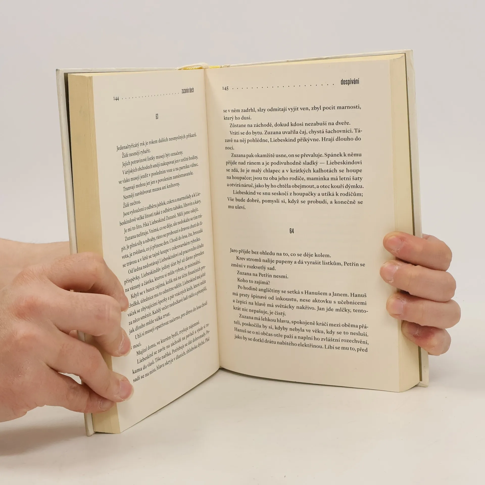 Jsou tři. Zpočátku děti. Svět je v rovnováze. Později se všechno změní. Ona miluje jednoho z nich, ji milují oba dva. Zuzana Liebeskindová je dcera cukrovarníka. Nic jí nechybí, kráčí životem lehce, obklopena láskou. Vzduchem se vznášejí vlákna přepáleného cukru. Třicátá léta dvacátého století v malém městečku Holašovice jsou sladká. Teprve během německé okupace začne Zuzana dospívat. Bolestně vrůstá do dějin a dějiny se vpisují do ní. Protože má židovský původ, je její osud předem daný. Transport. Koncentrák. Zuzanini přátelé Hanuš a Jan zůstávají v Holašovicích. Jejich cesty se však rozcházejí. Po skončení války se Zuzana vrací z koncentračního tábora, ztráty jsou ale větší, než čekala. Dokáže po všem, co prožila, ještě milovat? A má vůbec na výběr?