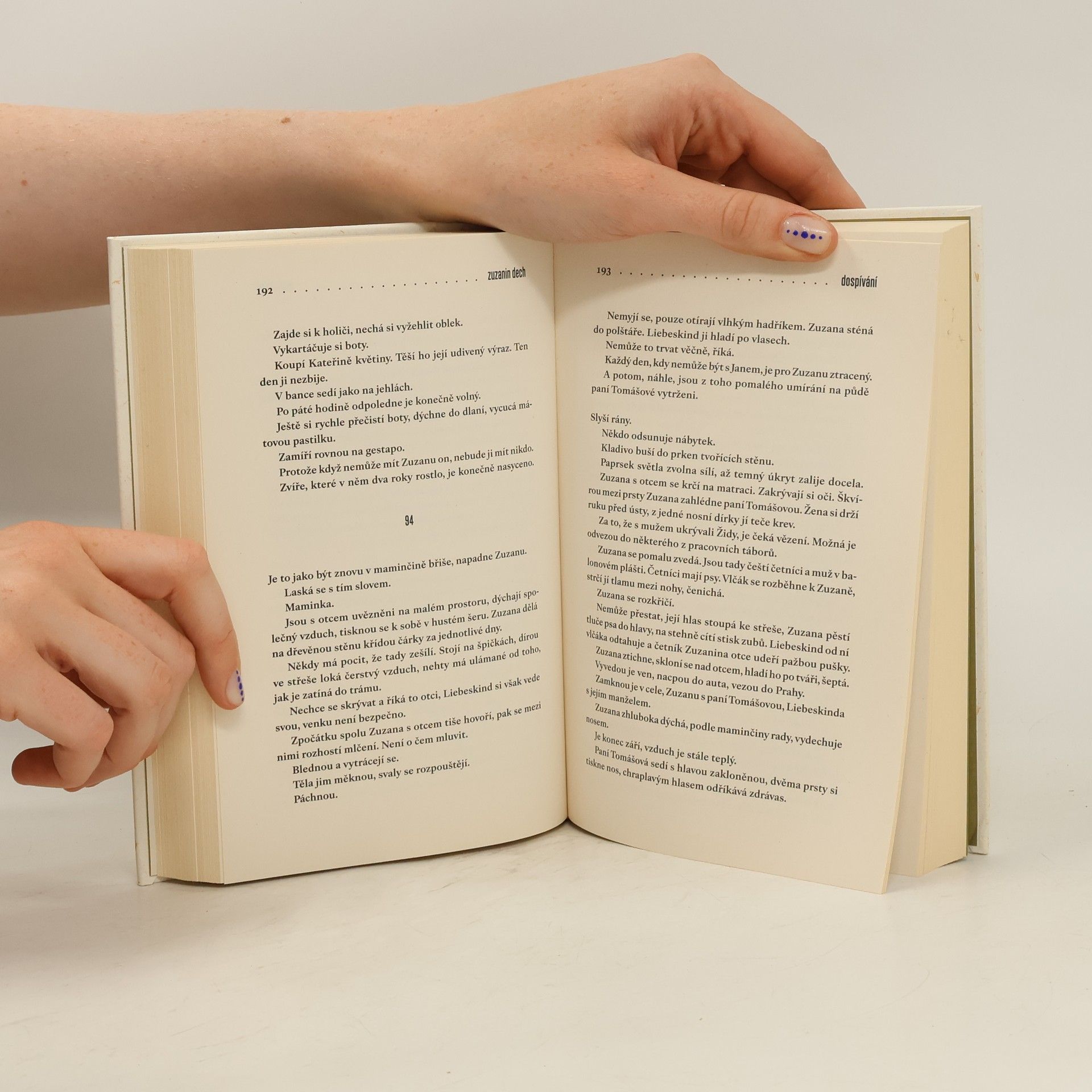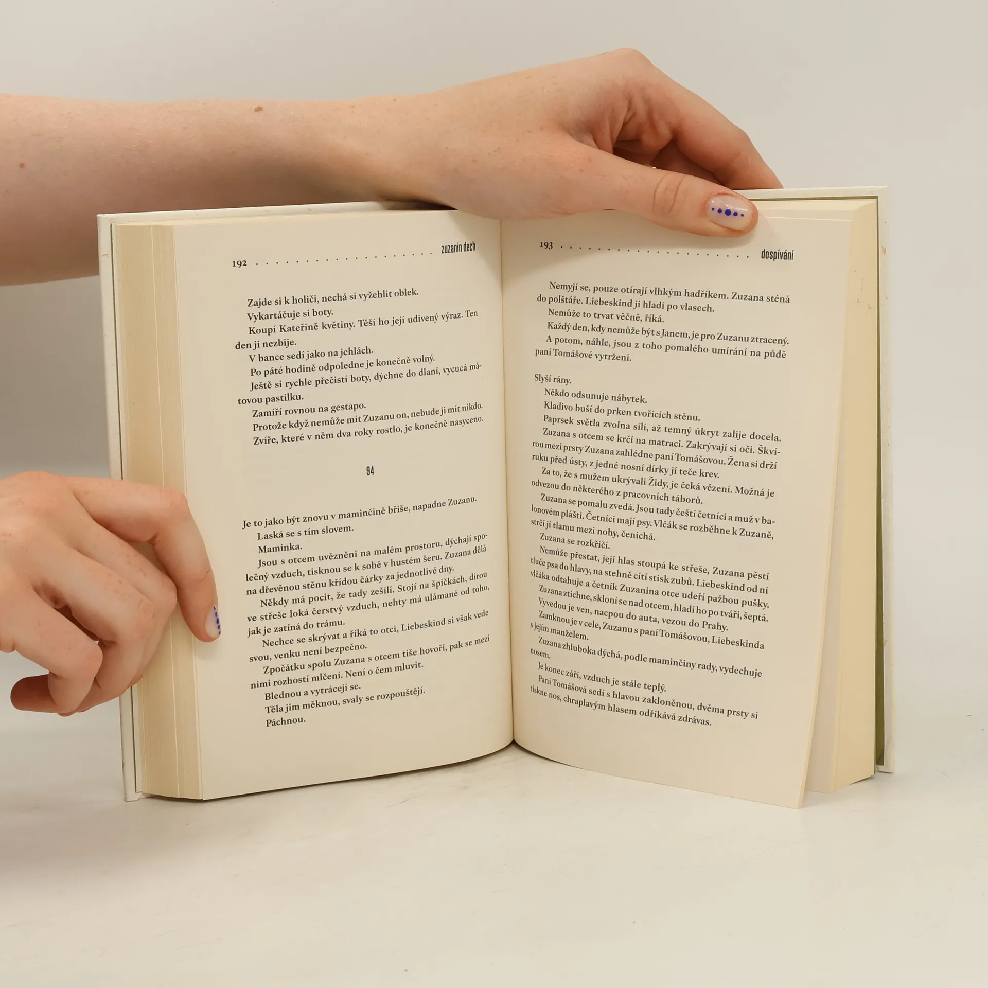 Jsou tři. Zpočátku děti. Svět je v rovnováze. Později se všechno změní. Ona miluje jednoho z nich, ji milují oba dva. Zuzana Liebeskindová je dcera cukrovarníka. Nic jí nechybí, kráčí životem lehce, obklopena láskou. Vzduchem se vznášejí vlákna přepáleného cukru. Třicátá léta dvacátého století v malém městečku Holašovice jsou sladká. Teprve během německé okupace začne Zuzana dospívat. Bolestně vrůstá do dějin a dějiny se vpisují do ní. Protože má židovský původ, je její osud předem daný. Transport. Koncentrák. Zuzanini přátelé Hanuš a Jan zůstávají v Holašovicích. Jejich cesty se však rozcházejí. Po skončení války se Zuzana vrací z koncentračního tábora, ztráty jsou ale větší, než čekala. Dokáže po všem, co prožila, ještě milovat? A má vůbec na výběr?