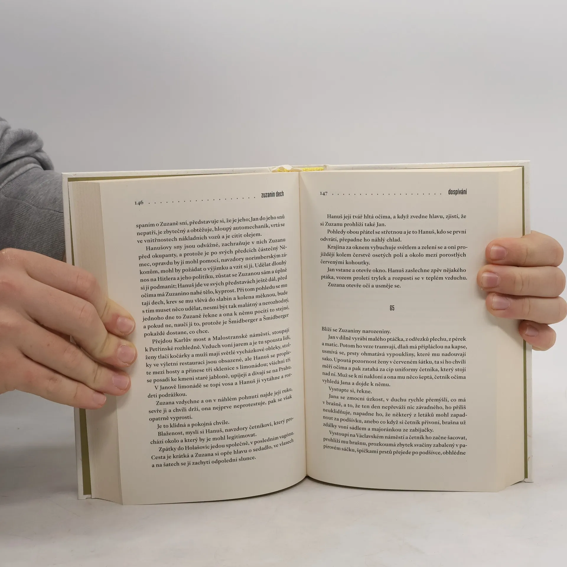 Jsou tři. Zpočátku děti. Svět je v rovnováze. Později se všechno změní. Ona miluje jednoho z nich, ji milují oba dva. Zuzana Liebeskindová je dcera cukrovarníka. Nic jí nechybí, kráčí životem lehce, obklopena láskou. Vzduchem se vznášejí vlákna přepáleného cukru. Třicátá léta dvacátého století v malém městečku Holašovice jsou sladká. Teprve během německé okupace začne Zuzana dospívat. Bolestně vrůstá do dějin a dějiny se vpisují do ní. Protože má židovský původ, je její osud předem daný. Transport. Koncentrák. Zuzanini přátelé Hanuš a Jan zůstávají v Holašovicích. Jejich cesty se však rozcházejí. Po skončení války se Zuzana vrací z koncentračního tábora, ztráty jsou ale větší, než čekala. Dokáže po všem, co prožila, ještě milovat? A má vůbec na výběr?