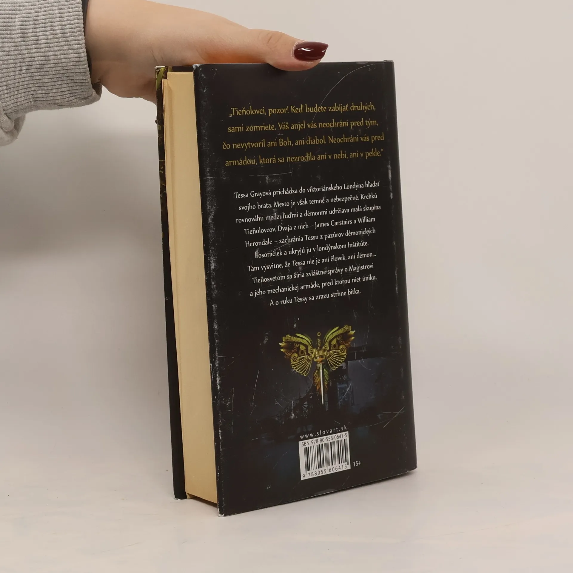 Šestnásťročná Tessa Grayová sa vydáva na dlhú zaoceánsku plavbu, aby vo viktoriánskom Anglicku našla brata. V Londýne plnom upírov, bosorákov a iných nadprirodzených bytostí, ju čaká doslova hrôza. Útočisko nájde u Tieňolovcov, ktorí jej prisľúbia pomoc, ak im na oplátku poskytne svoje tajomné schopnosti. Tessu očaria najmä dvaja najlepší priatelia: Jem, za ktorého peknou tvárou sa skrýva temné tajomstvo, a modrooký Will, ktorý od seba všetkých odháňa štipľavými komentármi a nevyspytateľnými náladami. Tessa pochopí, že si bude musieť vybrať, či zachráni brata, alebo pomôže novým priateľom zachrániť svet a že láska je to najnebezpečnejšie kúzlo zo všetkých. Prvá časť úspešnej trilógie vhodná pre čitateľov od 15 rokov.
