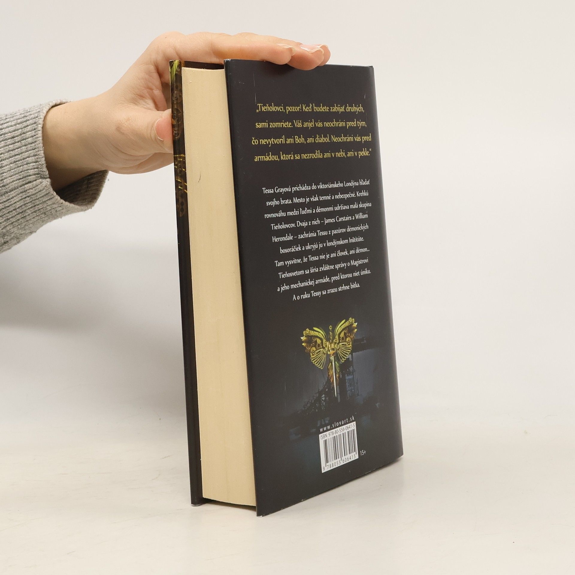 Šestnásťročná Tessa Grayová sa vydáva na dlhú zaoceánsku plavbu, aby vo viktoriánskom Anglicku našla brata. V Londýne plnom upírov, bosorákov a iných nadprirodzených bytostí, ju čaká doslova hrôza. Útočisko nájde u Tieňolovcov, ktorí jej prisľúbia pomoc, ak im na oplátku poskytne svoje tajomné schopnosti. Tessu očaria najmä dvaja najlepší priatelia: Jem, za ktorého peknou tvárou sa skrýva temné tajomstvo, a modrooký Will, ktorý od seba všetkých odháňa štipľavými komentármi a nevyspytateľnými náladami. Tessa pochopí, že si bude musieť vybrať, či zachráni brata, alebo pomôže novým priateľom zachrániť svet a že láska je to najnebezpečnejšie kúzlo zo všetkých. Prvá časť úspešnej trilógie vhodná pre čitateľov od 15 rokov.